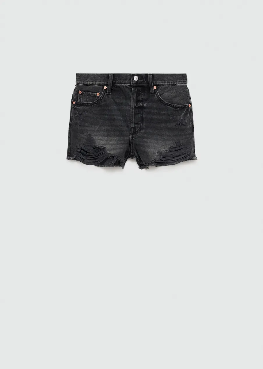 Tkanina bawełniana w dżinsowym stylu. Model prosty. Krótki krój. Dwie kieszenie z przodu. Kieszeń na bilon. Dwie kieszenie nakładane z tyłu. Szlufki. Ozdobne przetarcia. Zapięcie na guziki z przodu.