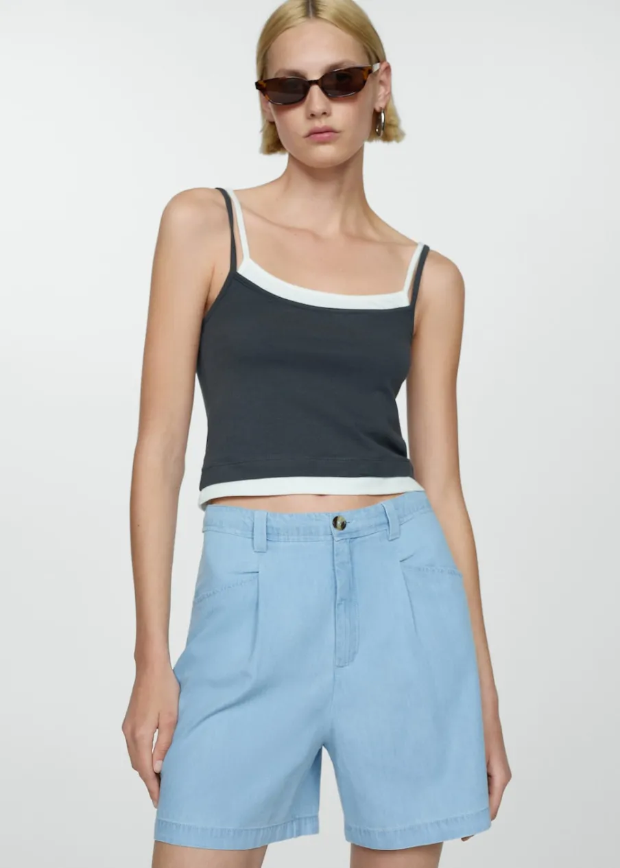 Średni stan. Krótki krój. Model prosty. Dwie kieszenie z przodu. Dwie kieszenie nakładane z tyłu. Szlufki. Zapięcie na zamek i guzik z przodu. Tkanina z 100% bawełny.