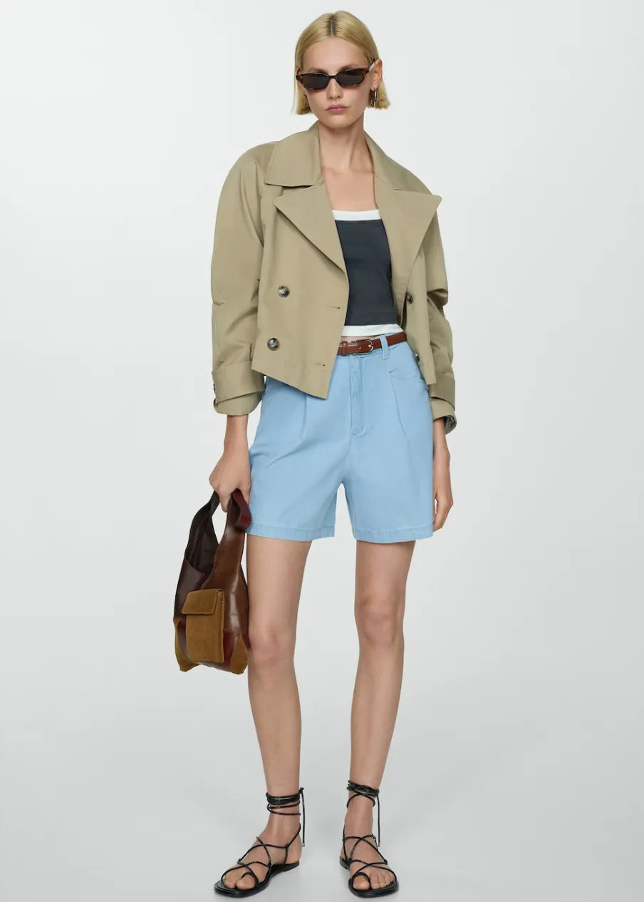 OpisŚredni stan. Krótki krój. Model prosty. Dwie kieszenie z przodu. Dwie kieszenie nakładane z tyłu. Szlufki. Zapi…