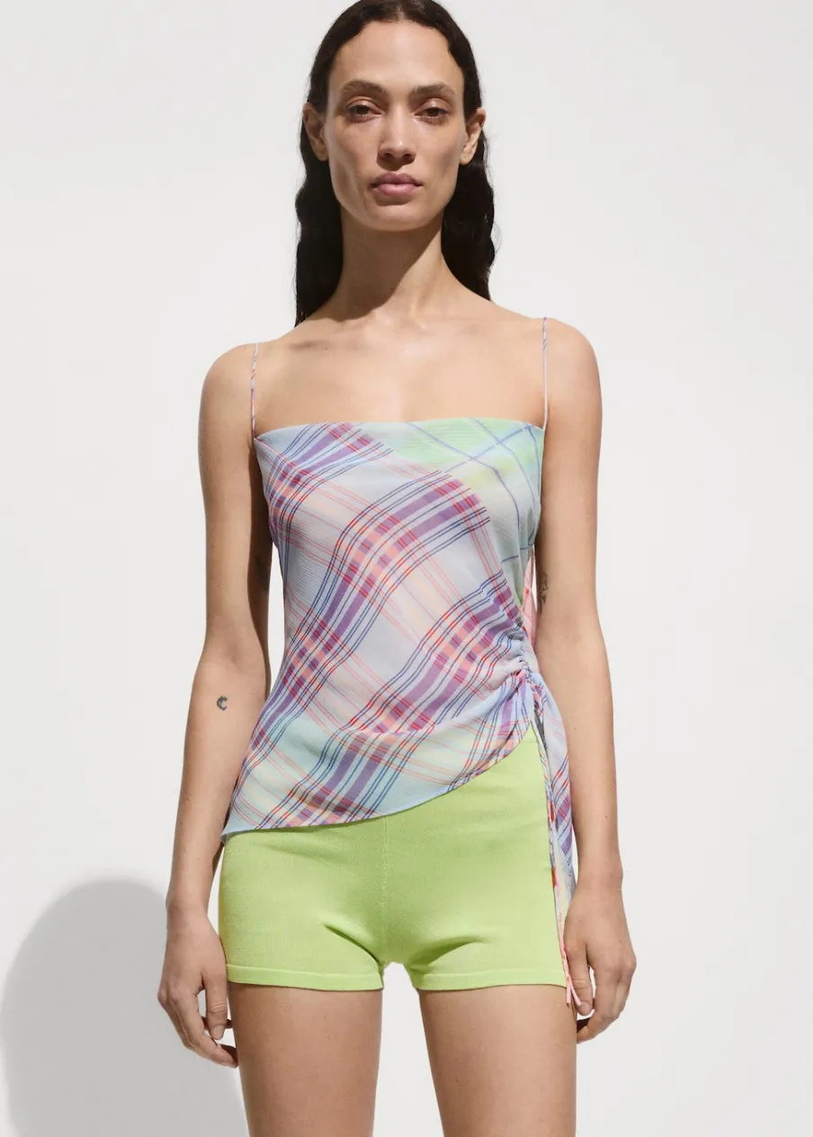Dzianinowa tkanina. Dzianina średniej grubości. Rozmiar mini. Krój skinny. Krótki krój. Elastyczny pas.