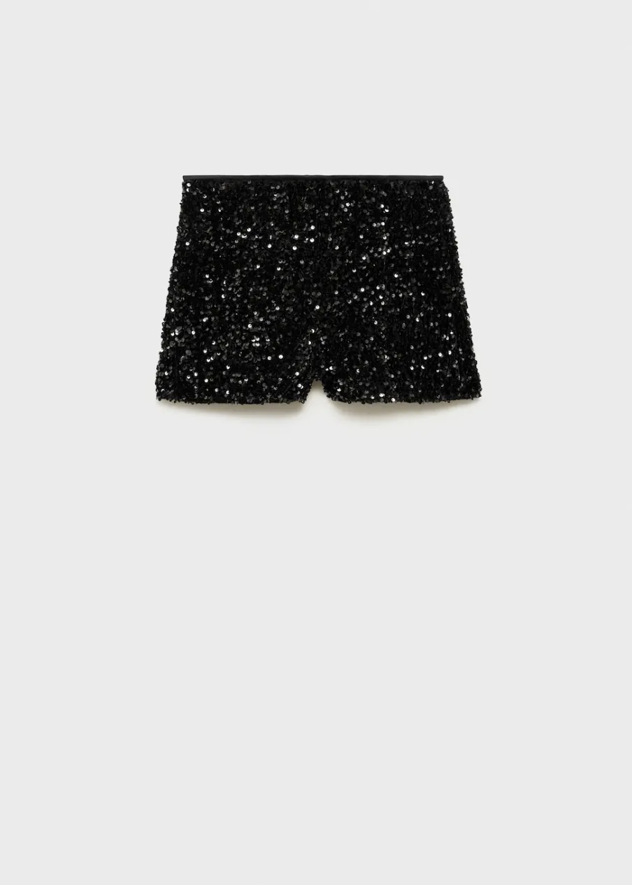 OpisCekinowa tkanina. Model prosty. Krótki krój. Elastyczny pas. Bez zapięcia. Total look. Kolekcja wizytowa.