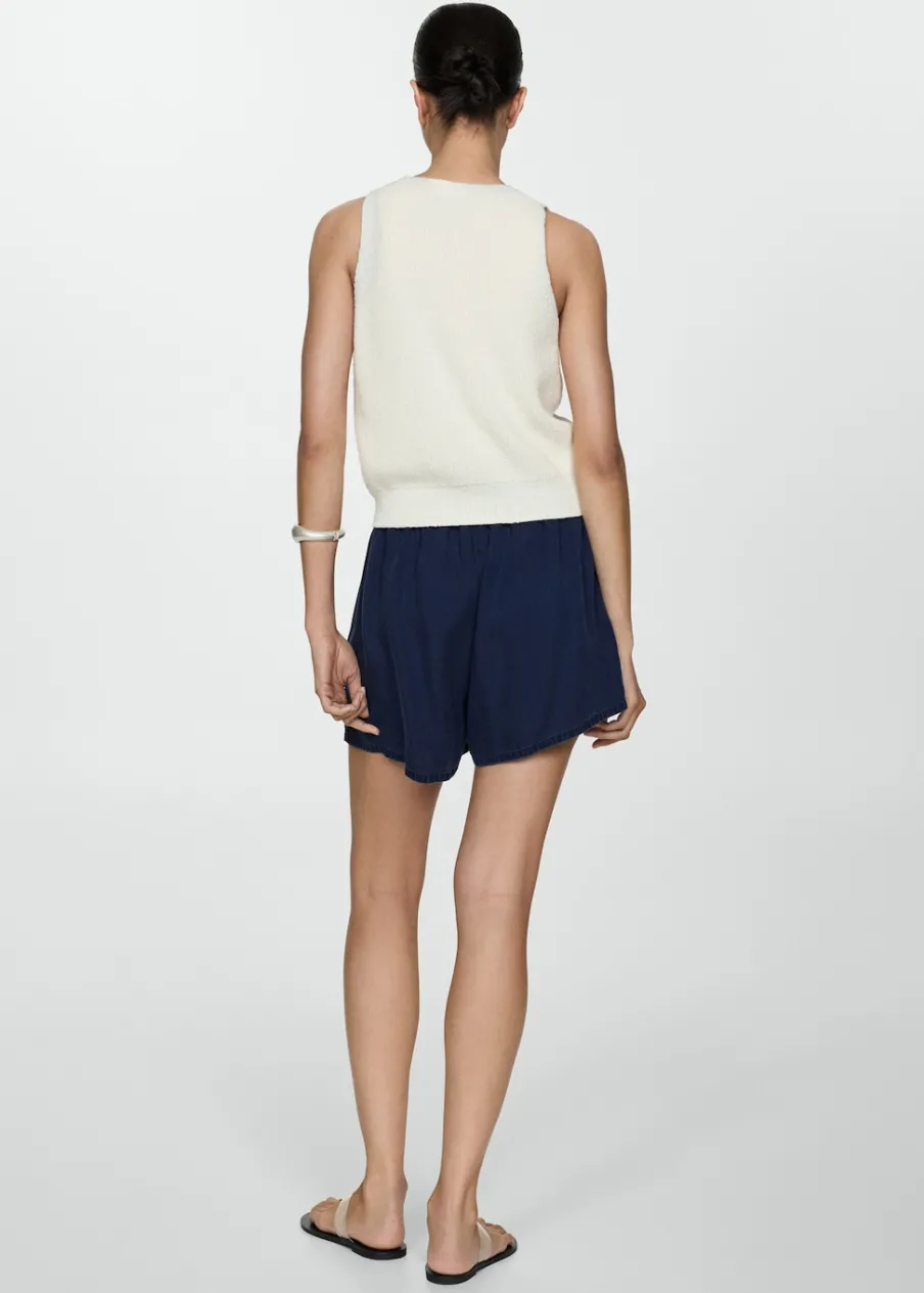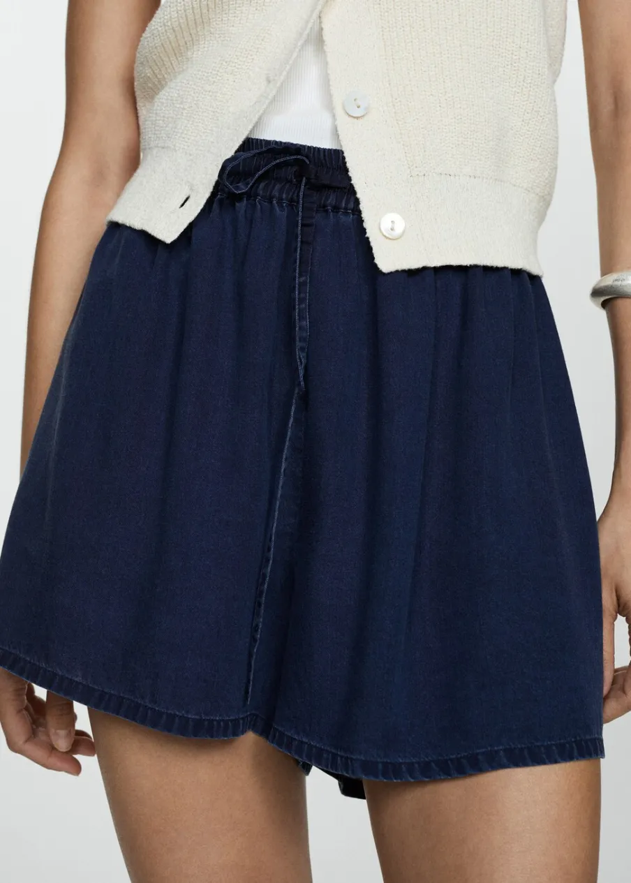 Tkanina lyocell. Krótki krój. Model prosty. Elastyczny pas z wiązanym zapięciem. Dostępne w Plus Size.