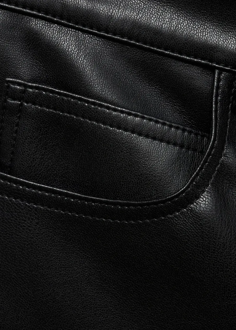 Efekt skóry. Model prosty. Krótki krój. Pięć kieszeni. Zapięcie na suwak i guzik. Modelka ma 178 cm wzrostu i nosi rozmiar S/36. Kolekcja wizytowa. Średni stan.