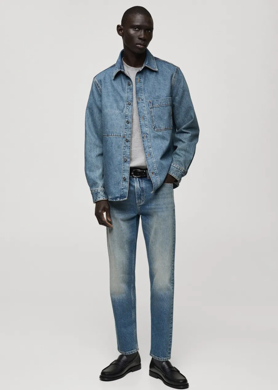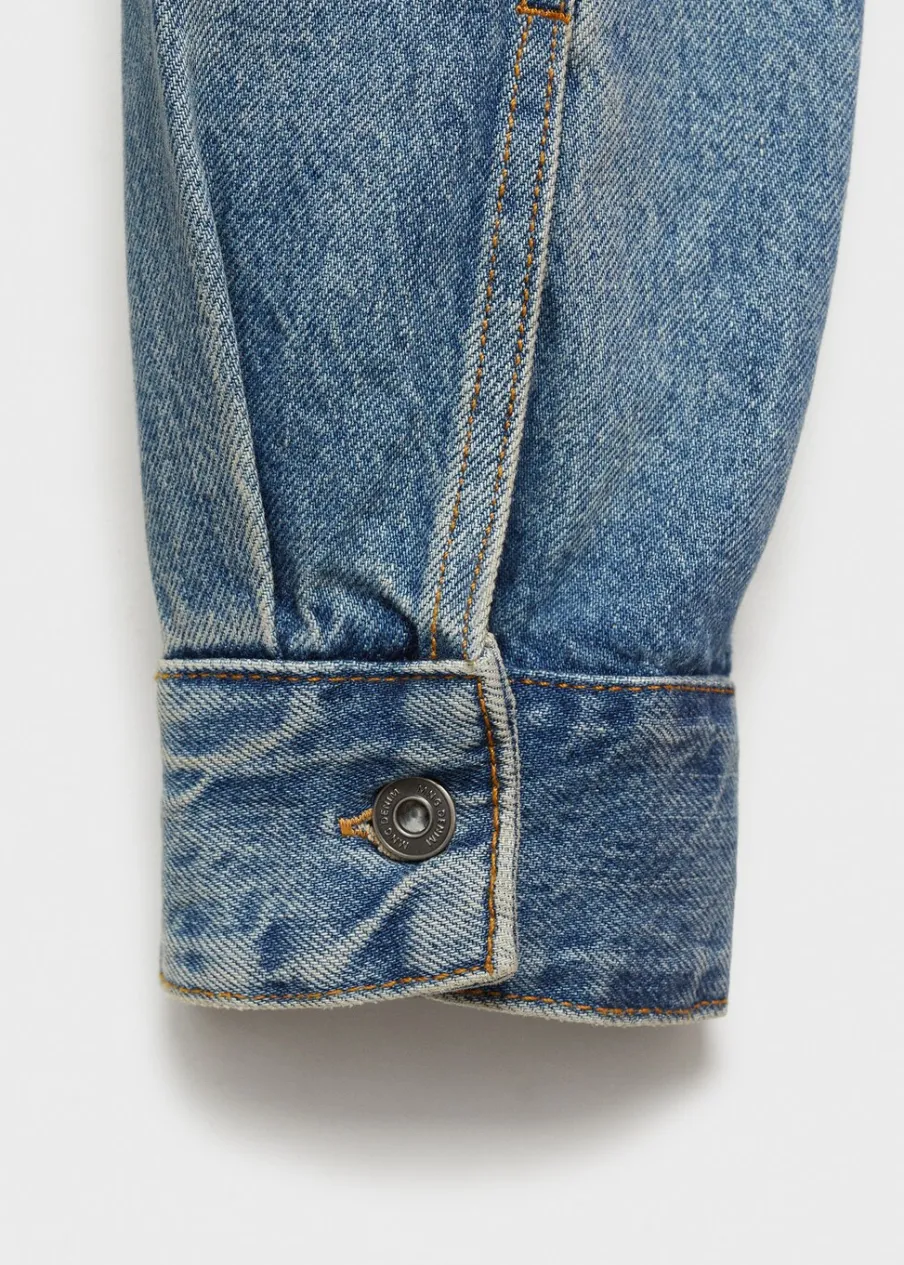 OpisKrój regular. Tkanina dżinsowa. Wytarty efekt. Koszulowy kołnierz. Zapięcie na metalowe guziki z przodu. Długi …