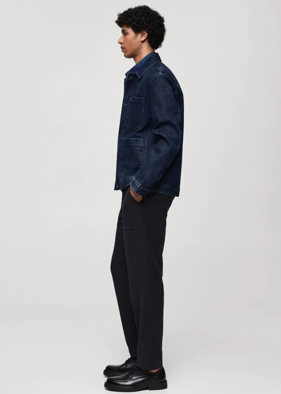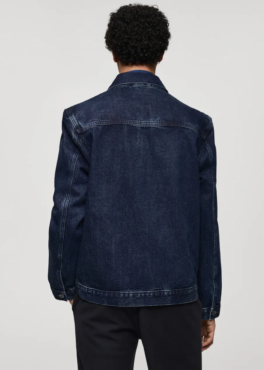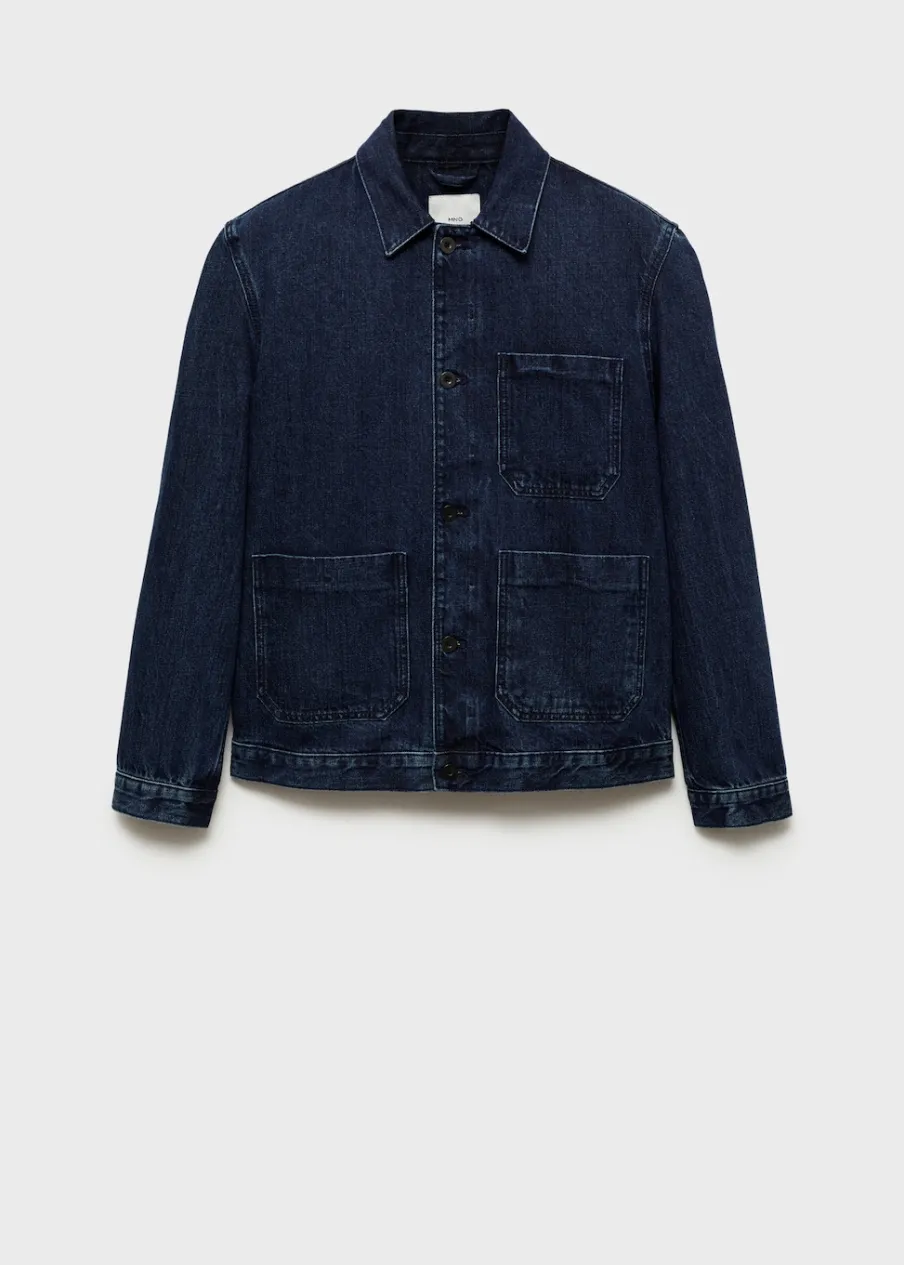 Model dżinsowy. Koszulowy kołnierz. Zapięcie z przodu na guziki. Długi rękaw z guzikami na mankietach. Kieszeń nakładana na piersi. Dwie kieszenie nakładane z przodu. Naszywa kieszeń po wewnętrznej stronie. Prosty dół. Model ma 185 cm wzrostu i nosi rozmiar M. Tkanina z 100% bawełny.