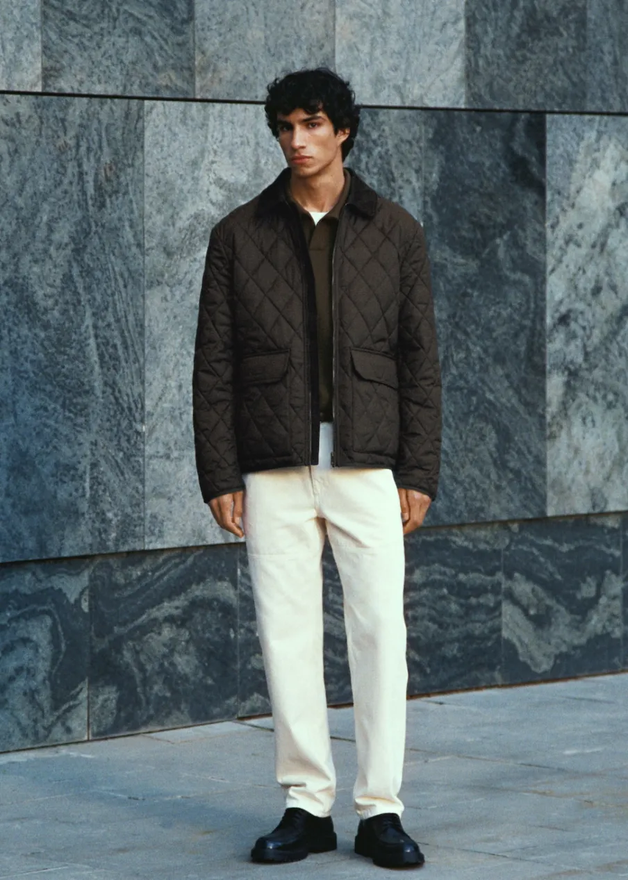Water Repellent: trwałe wykończenie tego modelu chroni przed lekkim deszczem, odpycha cząsteczki wody i krople deszczu. Kołnierzyk koszulowy ze sztruksu. Wewnętrzna podszewka. Cztery naszywane kieszenie z przodu. Mankiety na zatrzaski. Prosty dół. Zapięcie na suwak i zatrzaski. Model ma 185 cm wzrostu i nosi rozmiar M.
