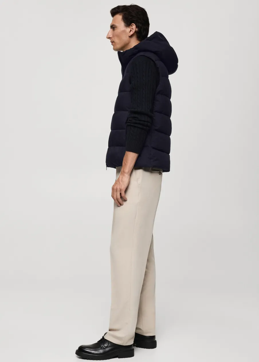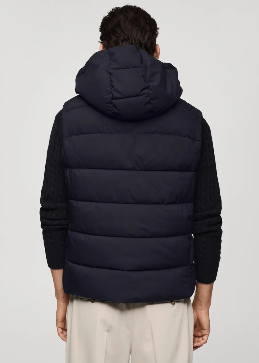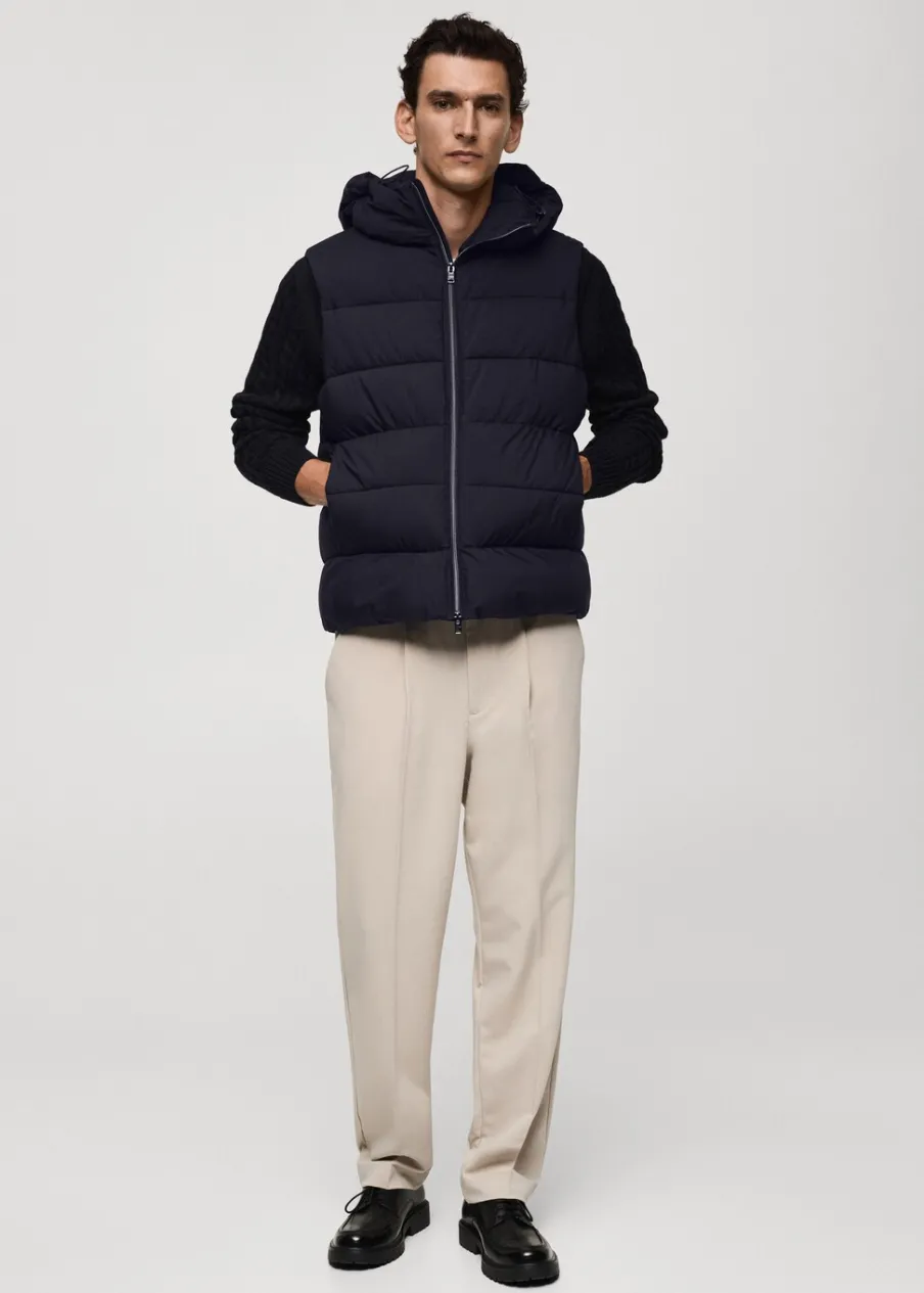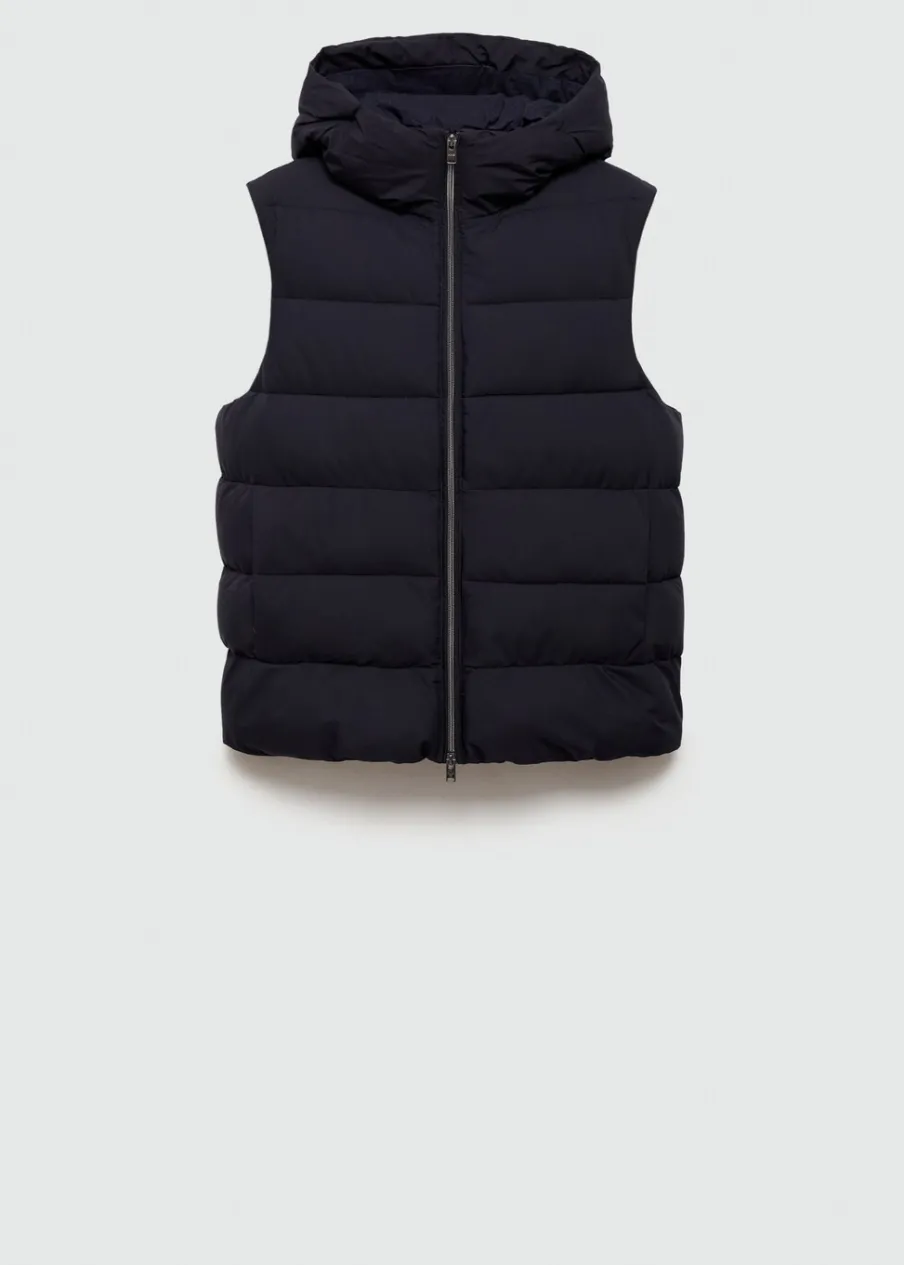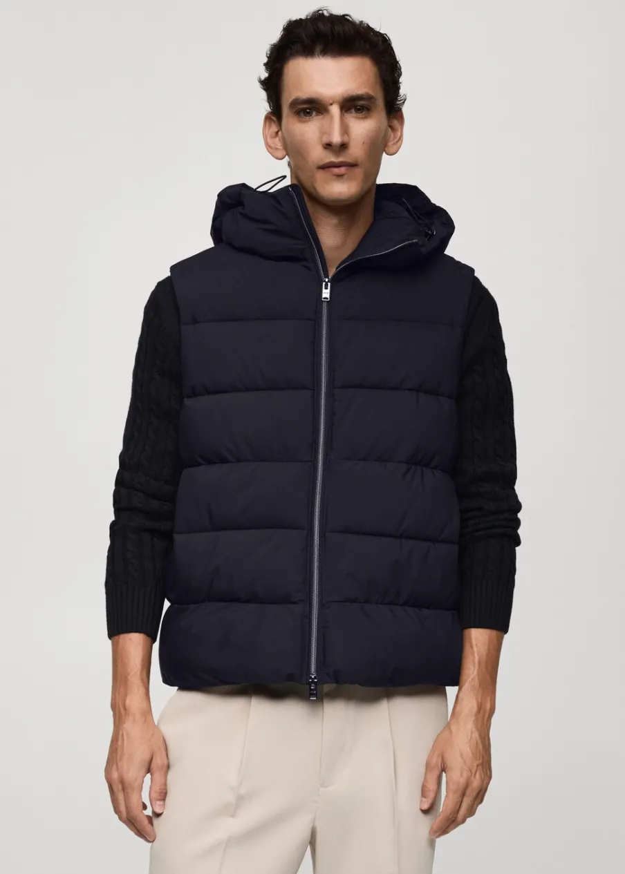 Wypełnienie z 100% poliestru z recyklingu. Krój regular. Model pikowany. Kaptur z regulowanym sznurkiem. Bez rękawów. Zapięcie na zamek z przodu. Dwie kieszenie wewnętrzne zapinane na suwak. Wewnętrzna podszewka. Model ma 190 cm wzrostu i nosi rozmiar M. Water Repellent: trwałe wykończenie tego modelu chroni przed lekkim deszczem, odpycha cząsteczki wody i krople deszczu. Termoregulacyjna: ta tkanina zapewnia optymalną przepuszczalność powietrza, by utrzymać stałą temperaturę ciała. Windproof: ten wytrzymały materiał zapewnia ochronę przed wiatrem dla większego komfortu podczas aktywności na świeżym powietrzu. Wewnętrzny sznurek do regulacji u dołu.