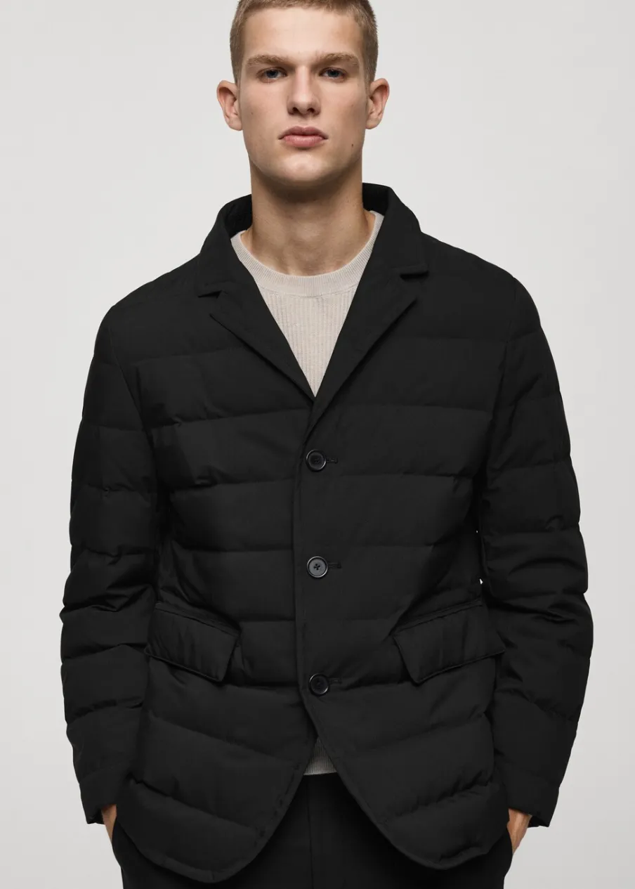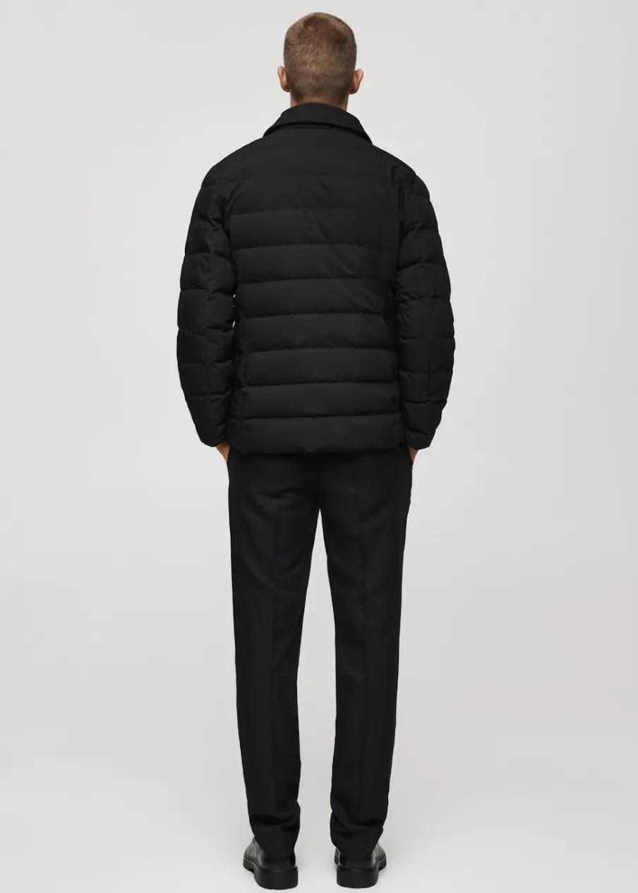Model pikowany. Kołnierz z klapami. Długi rękaw. Odpinany półgolf z zapięciem na zamek. Składany i chowany kaptur. Dwie kieszenie z patkami z przodu. Prosty dół. Wewnętrzna kieszeń zapinana na suwak. Model ma 190 cm wzrostu i nosi rozmiar M. Wypełnienie z puchu i pierza 70/30. Water Repellent: trwałe wykończenie tego modelu chroni przed lekkim deszczem, odpycha cząsteczki wody i krople deszczu. Windproof: ten wytrzymały materiał zapewnia ochronę przed wiatrem dla większego komfortu podczas aktywności na świeżym powietrzu. Zapięcie na guziki z przodu.