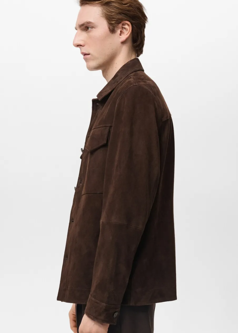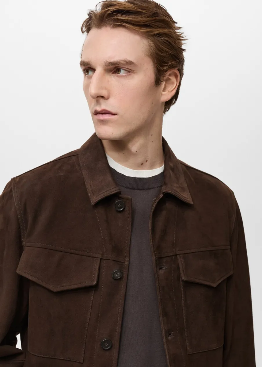 ESSENTIALS: Made to last. Zamsz. Krój regular. Koszulowy kołnierz. Zapięcie na guziki z przodu. Długi, zapinany rękaw. Dwie naszywane kieszenie z patką na piersi. Stębnowane detale. Model ma 190 cm wzrostu i nosi rozmiar M.