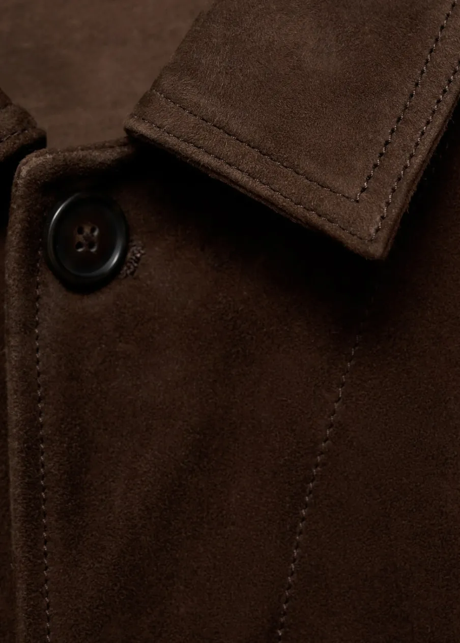 OpisESSENTIALS: Made to last. Zamsz. Krój regular. Koszulowy kołnierz. Zapięcie na guziki z przodu. Długi, zapinany …