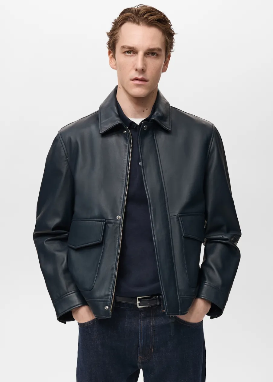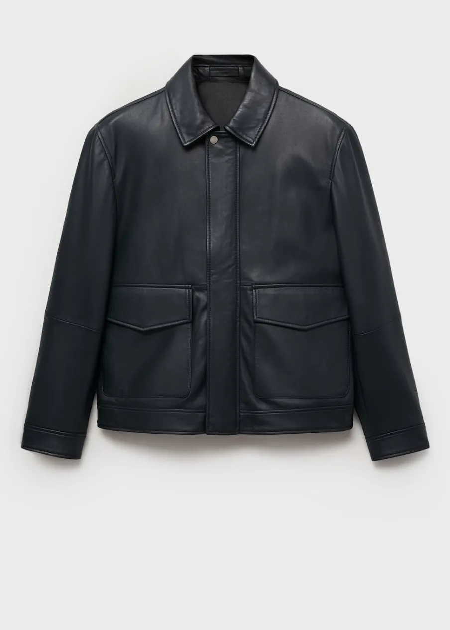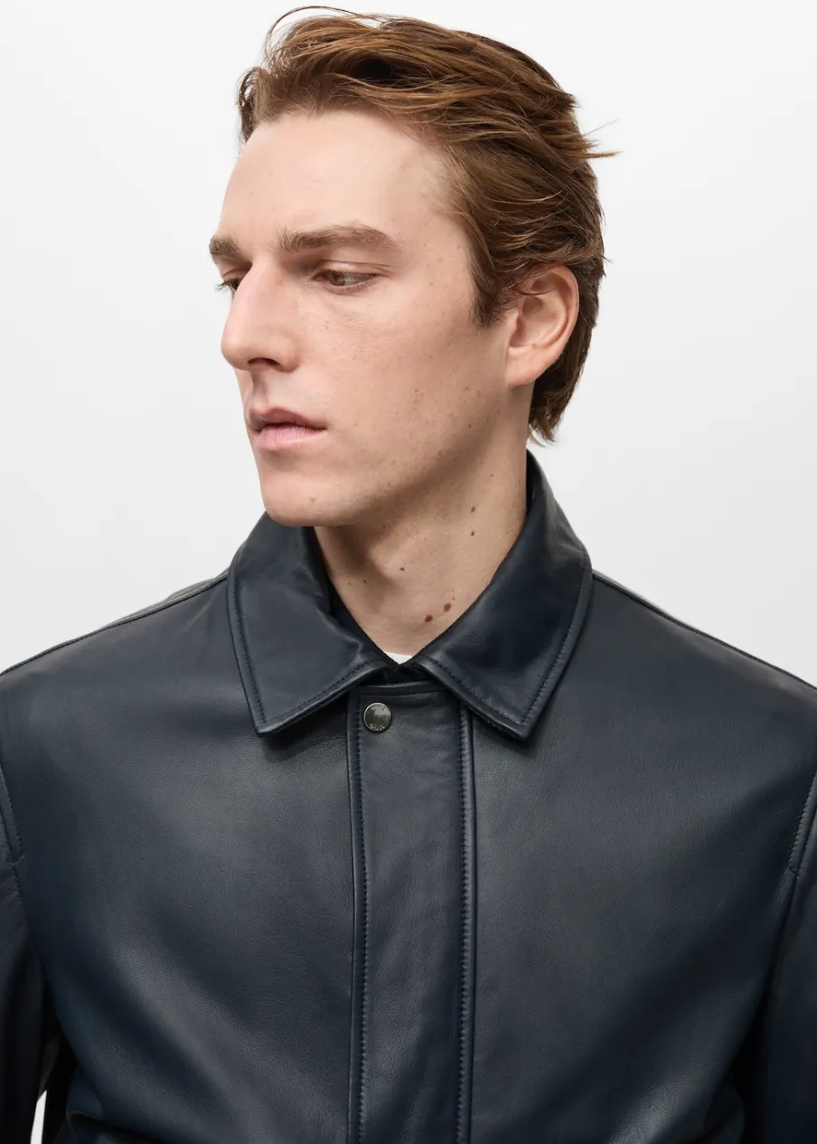 ESSENTIALS: Made to last. Skóra nappa. Krój regular. Koszulowy kołnierz. Zapięcie z przodu na zamek i zatrzaski kryte listwą. Długi rękaw. Dwie naszywane kieszenie z patkami z przodu. Prosty dół. Wewnętrzna podszewka. Wewnętrzna kieszeń. Model ma 190 cm wzrostu i nosi rozmiar M.