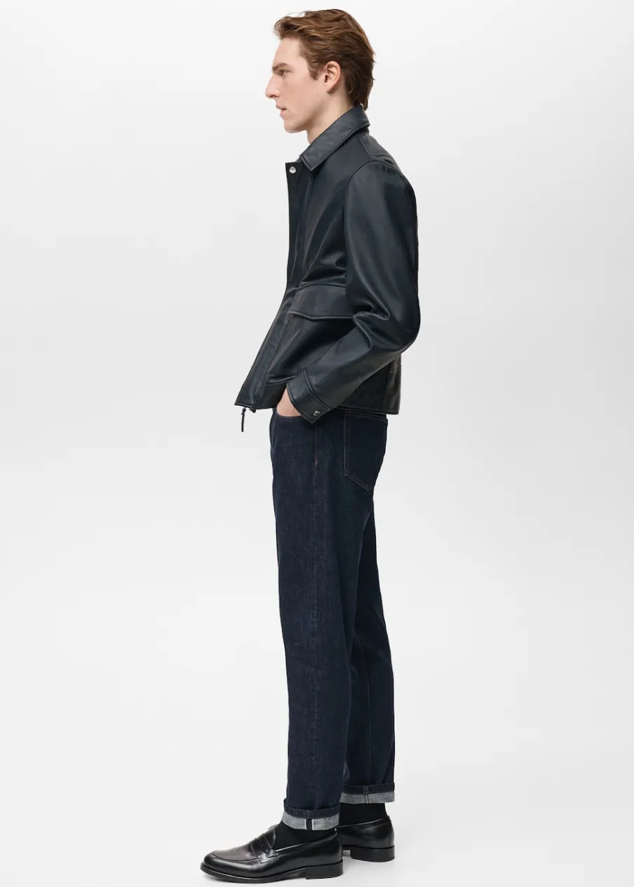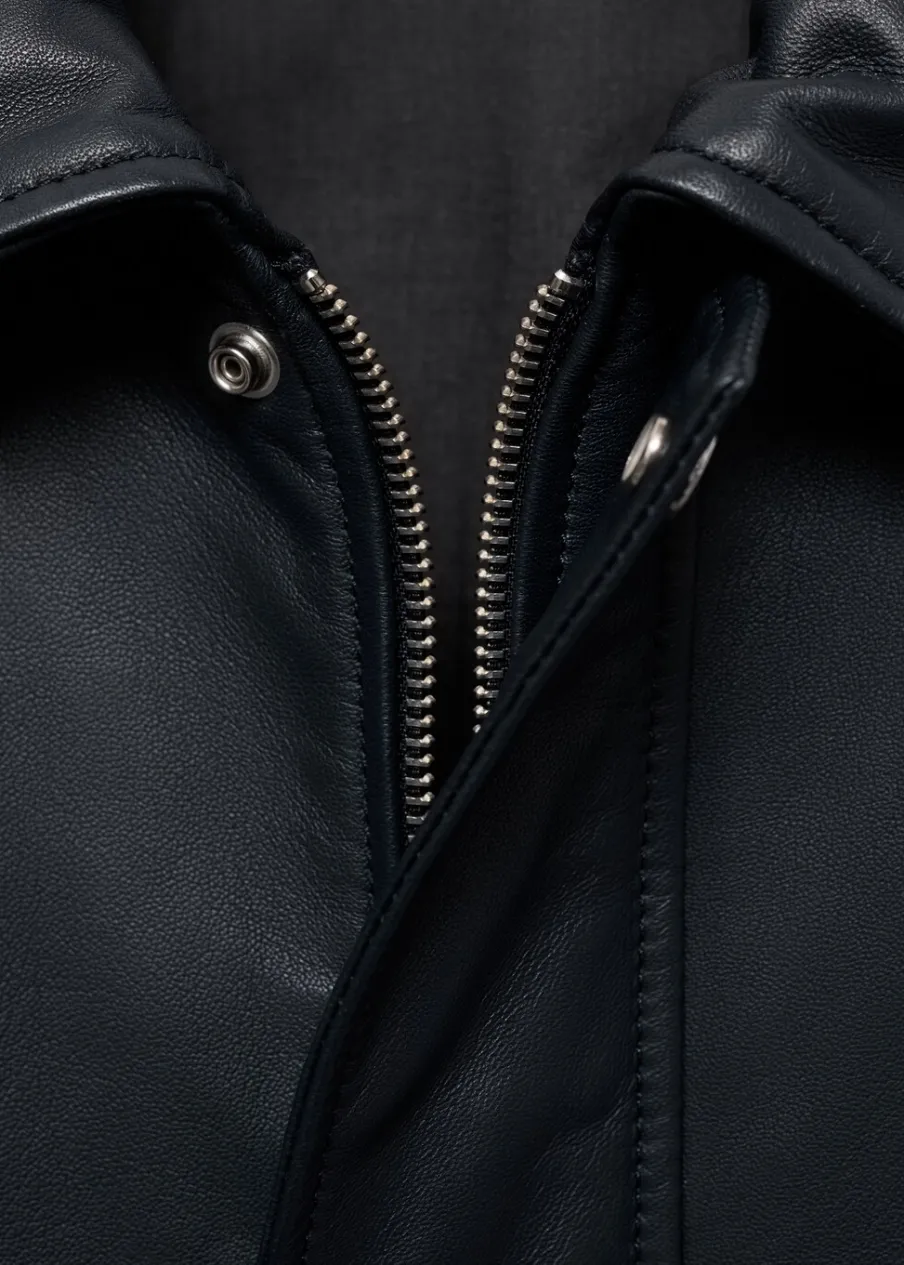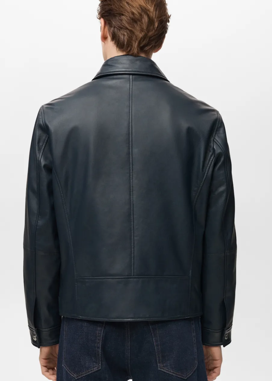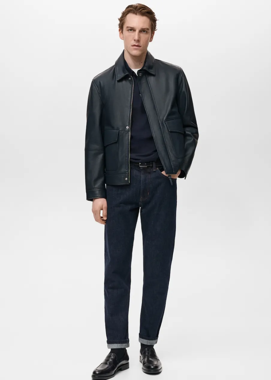 ESSENTIALS: Made to last. Skóra nappa. Krój regular. Koszulowy kołnierz. Zapięcie z przodu na zamek i zatrzaski kryte listwą. Długi rękaw. Dwie naszywane kieszenie z patkami z przodu. Prosty dół. Wewnętrzna podszewka. Wewnętrzna kieszeń. Model ma 190 cm wzrostu i nosi rozmiar M.