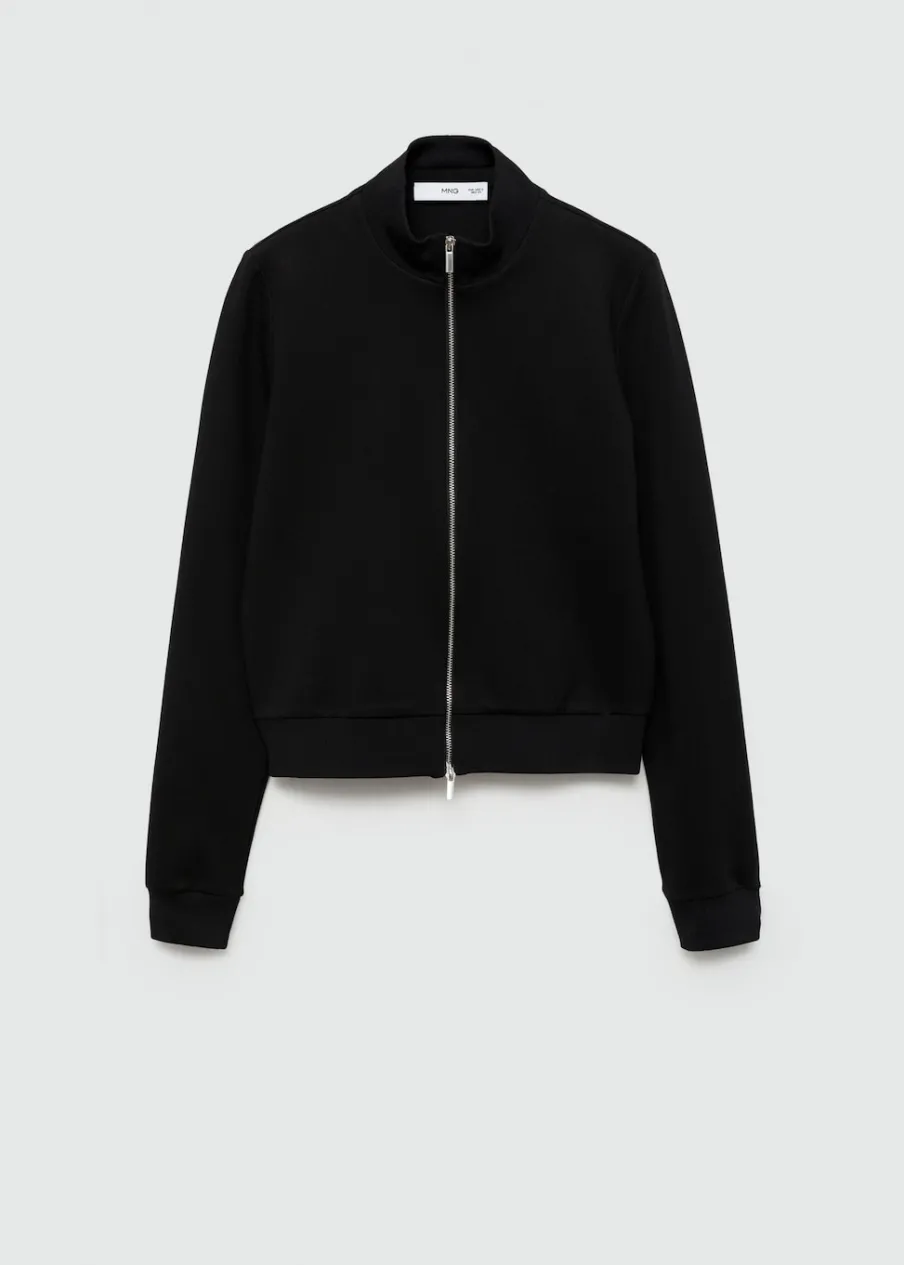 Model prosty. Okrągły dekolt. Długi rękaw z elastycznymi mankietami. Zapięcie na podwójny suwak. Model wcięty.
