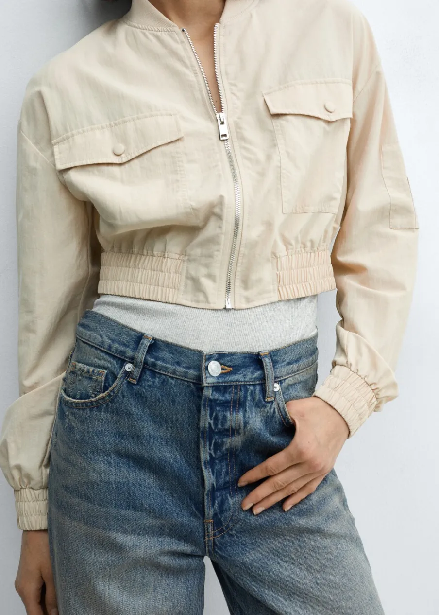 OpisLejąca tkanina. Model bomber. Krótki krój. Kołnierzyk typu bomber. Długi rękaw z elastycznymi mankietami. Zapi…