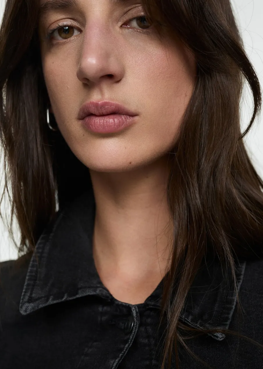Tkanina bawełniana w dżinsowym stylu. Długi rękaw z guzikami na mankietach. Dwie kieszenie naszyte na piersi. Dwie kieszenie boczne. Zapięcie z przodu na guziki. Dostępne w Plus Size. Klasyczny kołnierzyk.