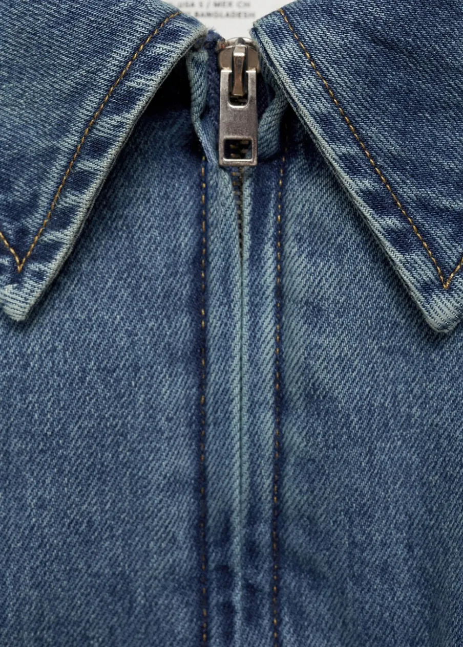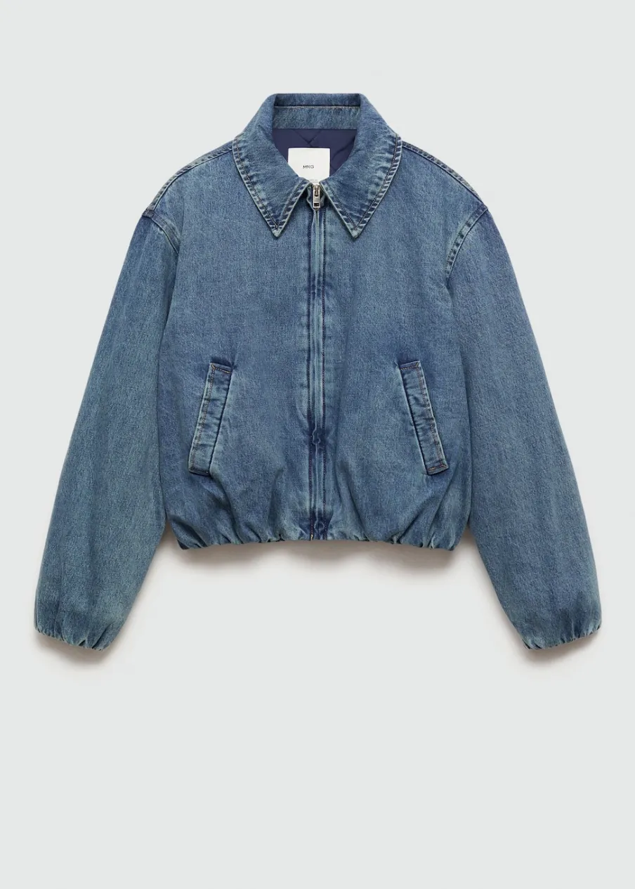 Tkanina bawełniana w dżinsowym stylu. Model bomber. Deseń crop. Koszulowy kołnierz. Długi rękaw z elastycznymi mankietami. Kieszenie boczne. Zapięcie z przodu na suwak. Modelka ma 179 cm wzrostu i nosi rozmiar S/36.