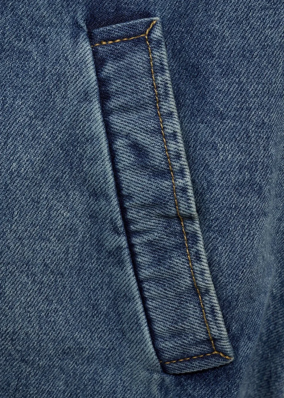 OpisTkanina bawełniana w dżinsowym stylu. Model bomber. Deseń crop. Koszulowy kołnierz. Długi rękaw z elastycznymi…