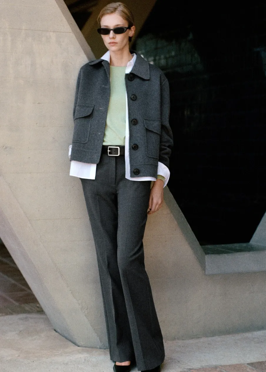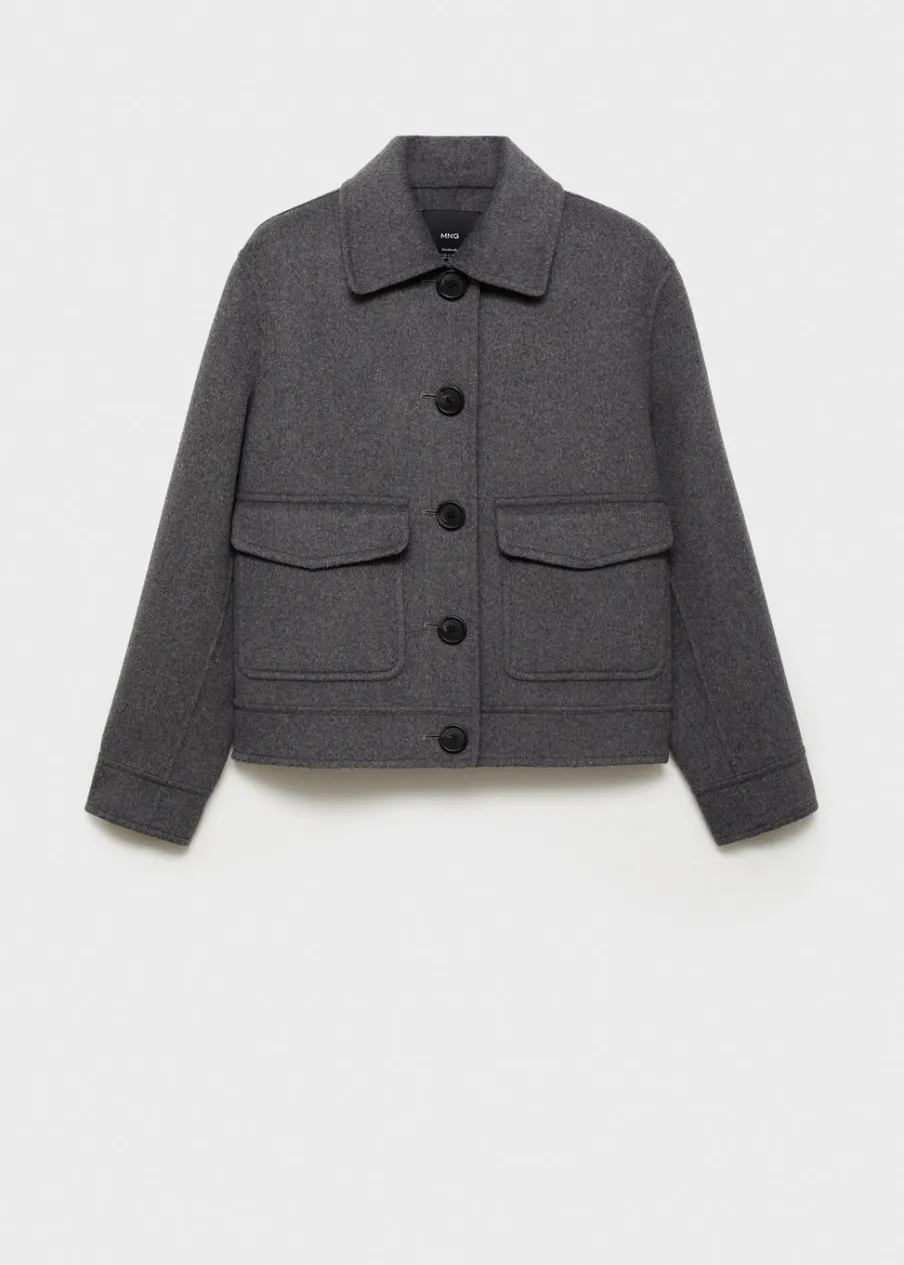 OpisTkanina mieszanka wełny. Model prosty. Koszulowy kołnierz. Długi rękaw. Dwie kieszenie z patkami z przodu. Model…