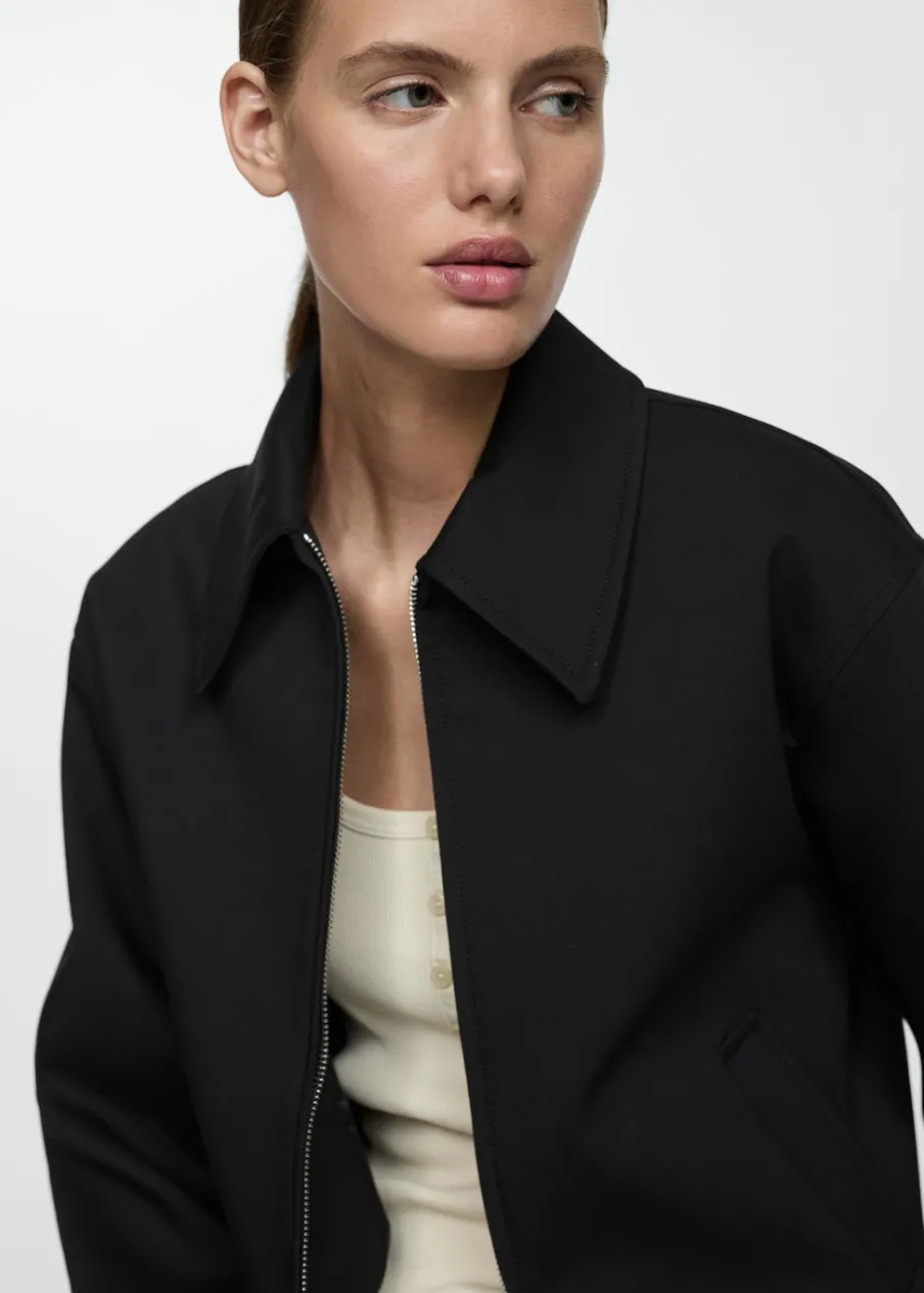 Tkanina mieszanka bawełny. Model oversize. Koszulowy kołnierz. Długi rękaw. Zapięcie z przodu na suwak. Wewnętrzna podszewka. Modelka ma 180 cm wzrostu i nosi rozmiar S.