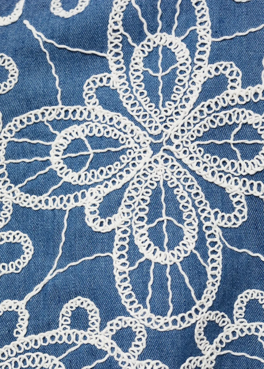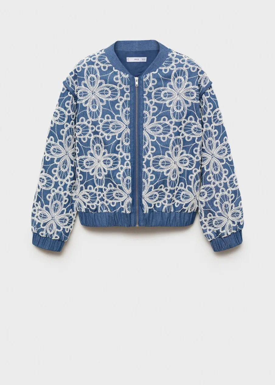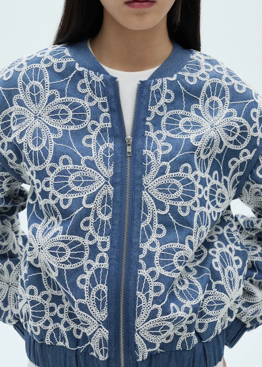 Bawełna 100%. Model prosty. Model standardowy. Kwiatowy haft. Średnia wielkość. Stójkowy kołnierzyk. Długi rękaw. Elastyczne mankiety. Zapięcie z przodu na suwak. Tylko podszewka.