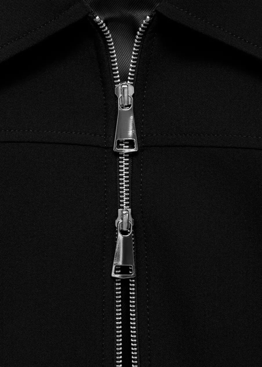 OpisModel prosty. Koszulowy kołnierz. Długi rękaw. Zapięcie na podwójny suwak. Total look. Modelka ma 181 cm wzrost…