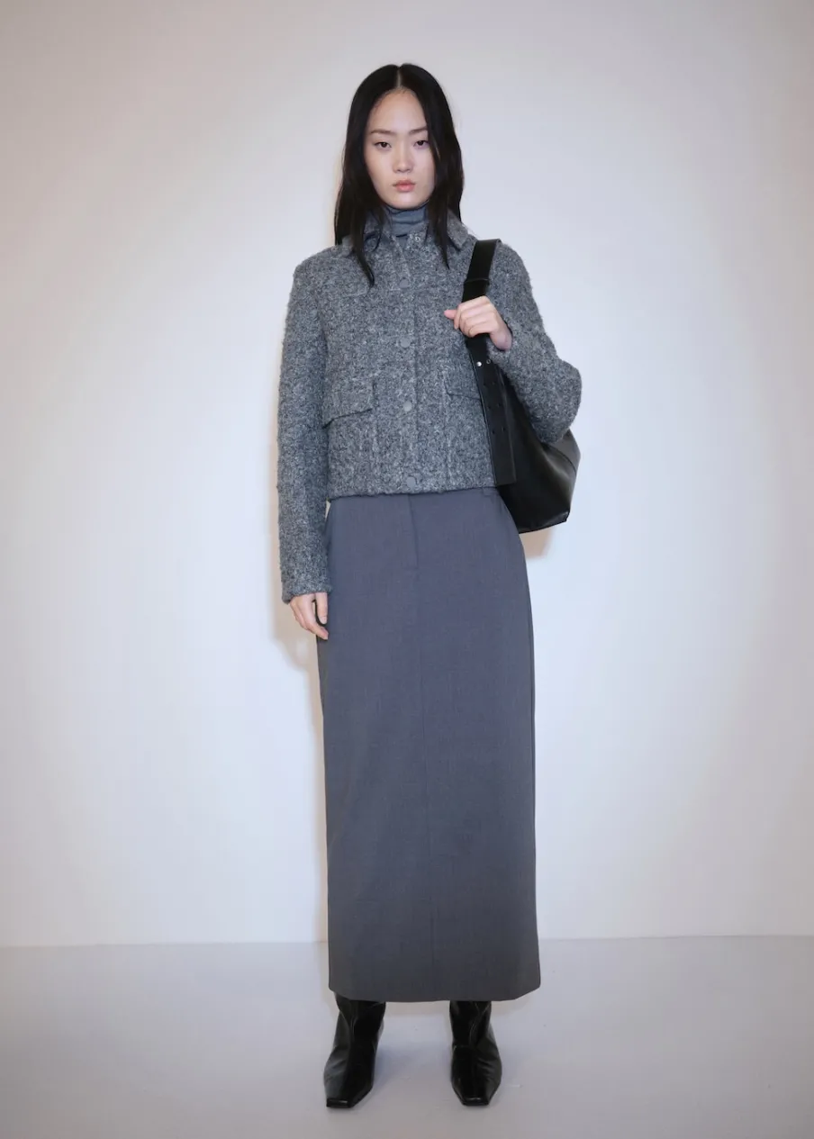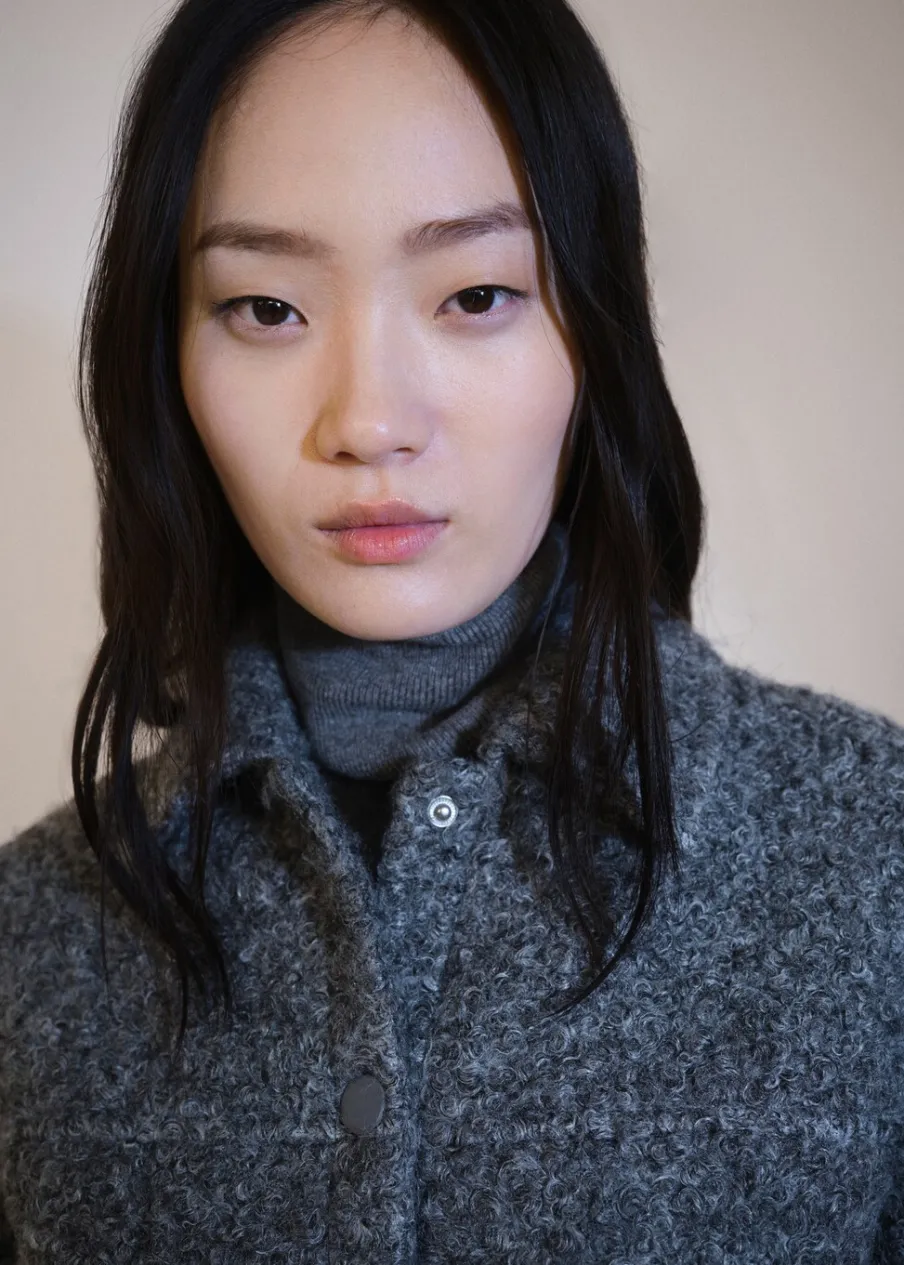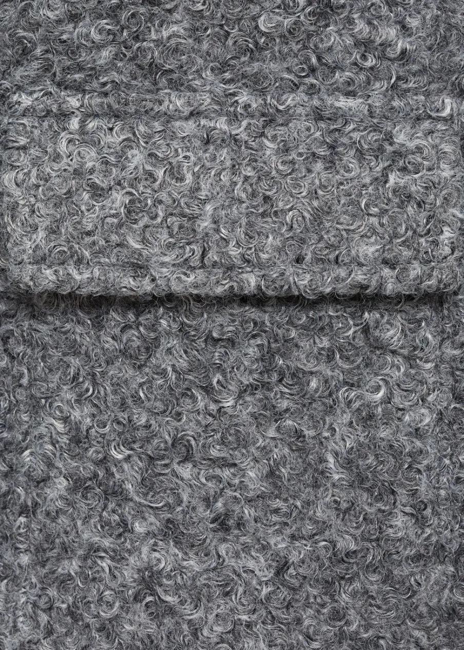 Krótki krój. Koszulowy kołnierz. Długi rękaw. Zapięcie z przodu na zatrzaskowe guziki. Dwie kieszenie z patkami z przodu. Model prosty. Efekt czesanego materiału z teksturą frotte. Modelka ma 175 cm wzrostu i nosi rozmiar S/36.