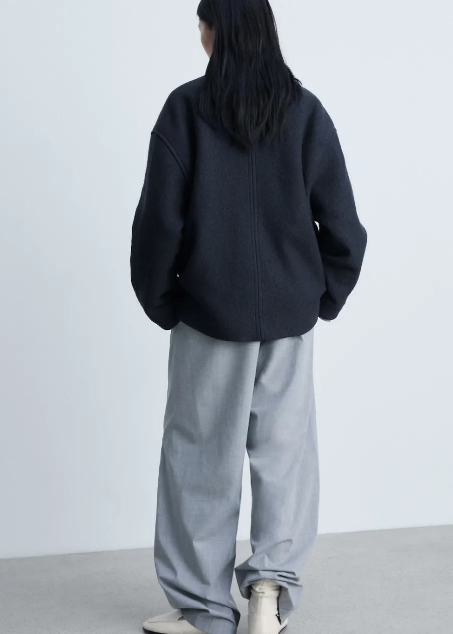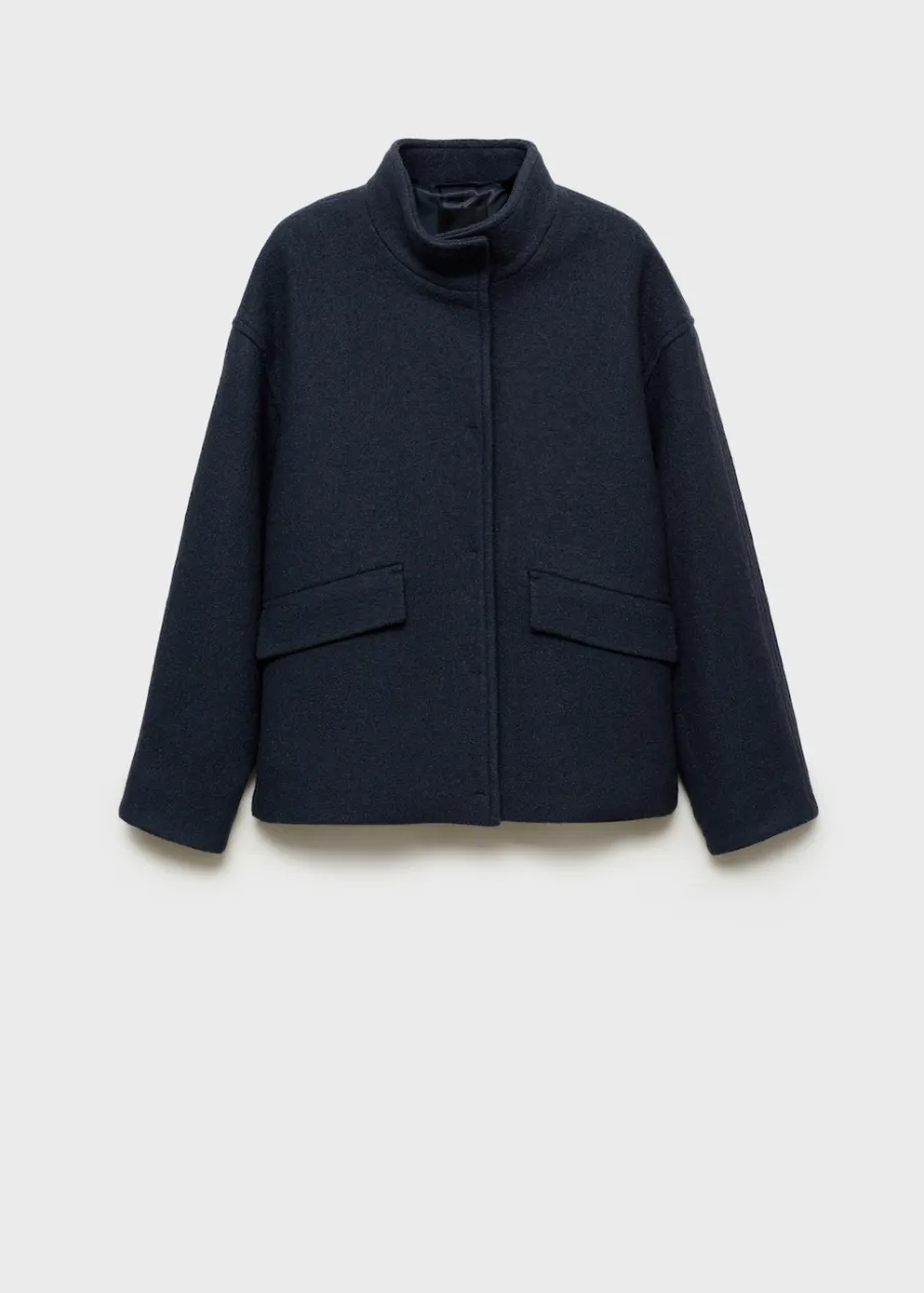 Tkanina mieszanka wełny. Model prosty. Golf. Długi rękaw. Dwie kieszenie z patką z przodu. Kryte zapięcie na guziki z przodu. Wewnętrzna podszewka.