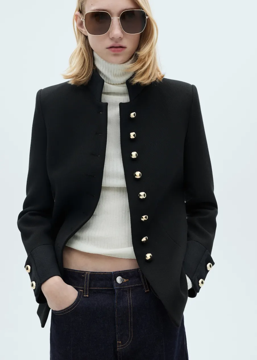 Tkanina mieszanka bawełny. Model strukturalny. Model prosty. Dekolt z listwą. Długi rękaw. Zapięcie na guziki z przodu. Biżuteryjne guziki. Wewnętrzna podszewka.