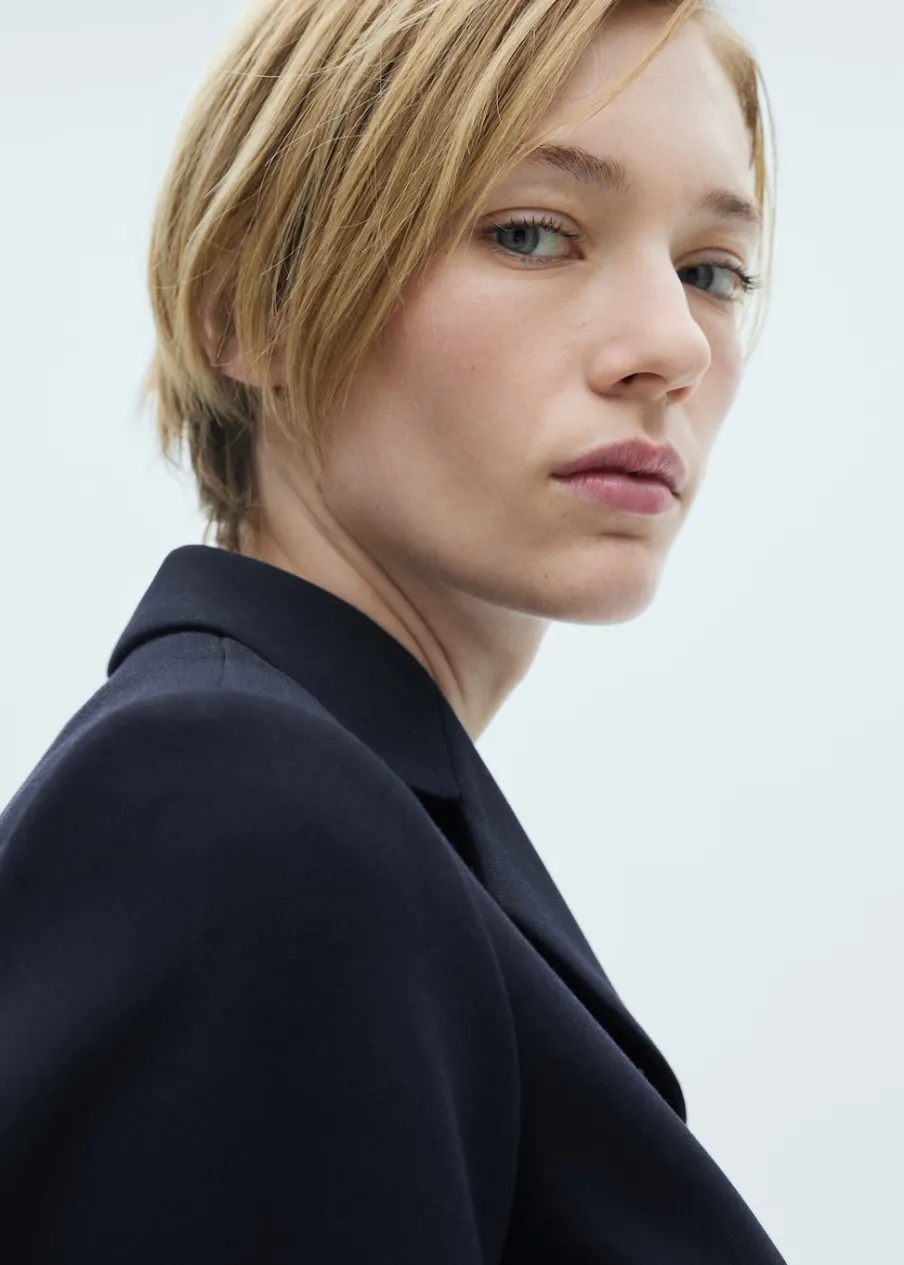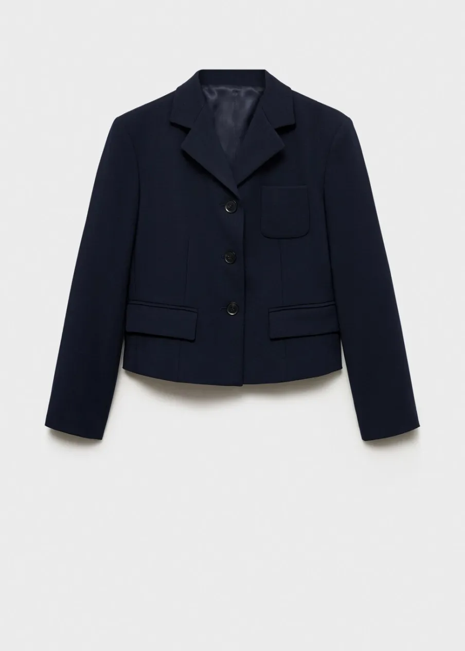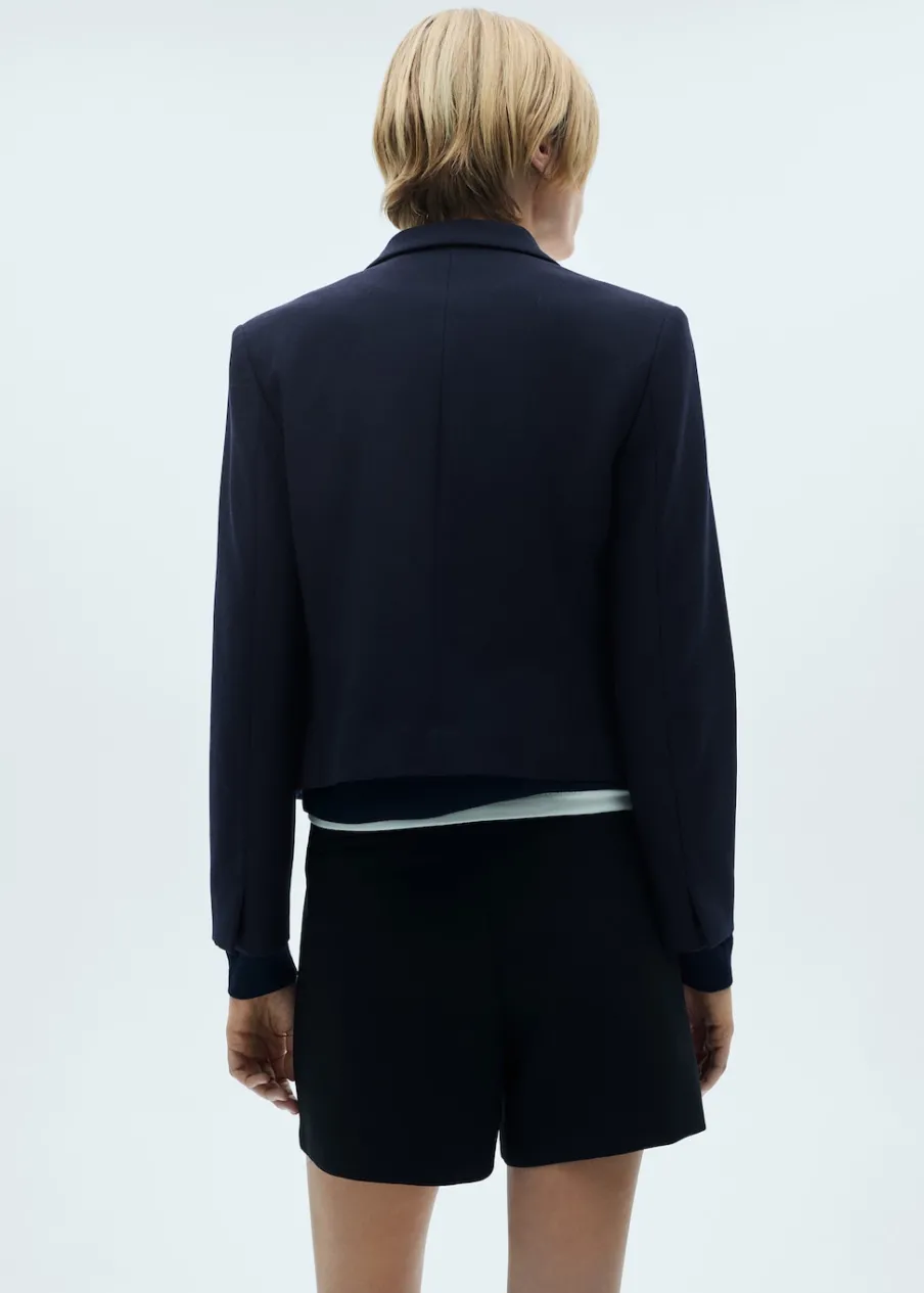 Model prosty. Deseń crop. Dekolt w szpic z kołnierzykiem. Klapy z nacięciem. Długi rękaw z guzikami na mankietach. Dwie kieszenie z patkami z przodu. Kieszeń nakładana na piersi. Wewnętrzna podszewka. Modelka ma 181 cm wzrostu i nosi rozmiar S/36. Zapięcie na guziki z przodu.
