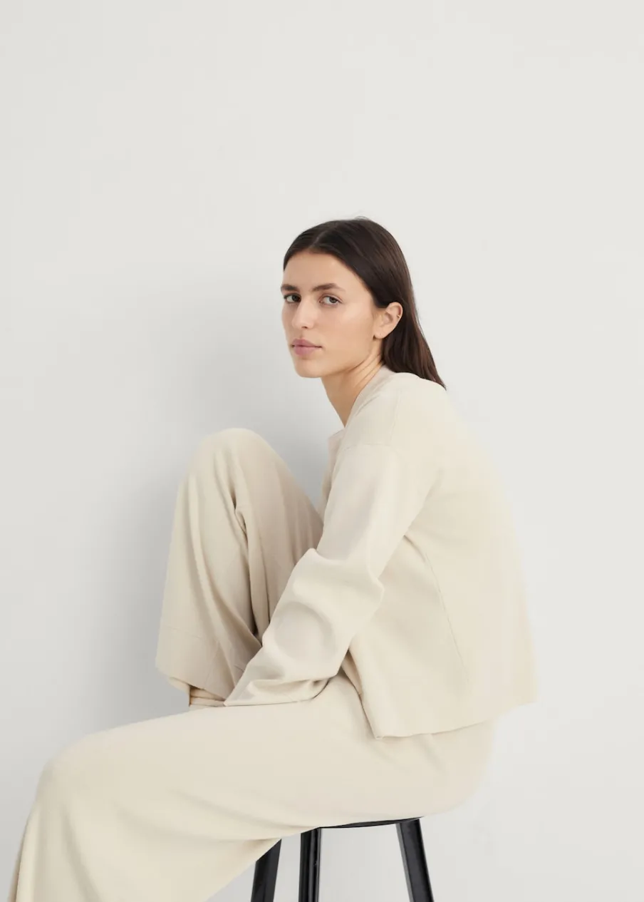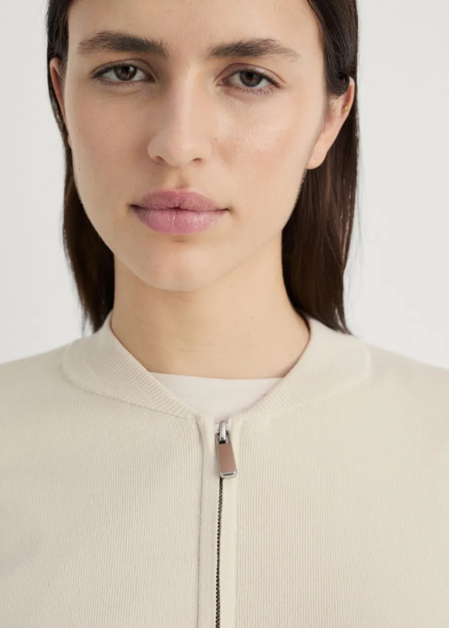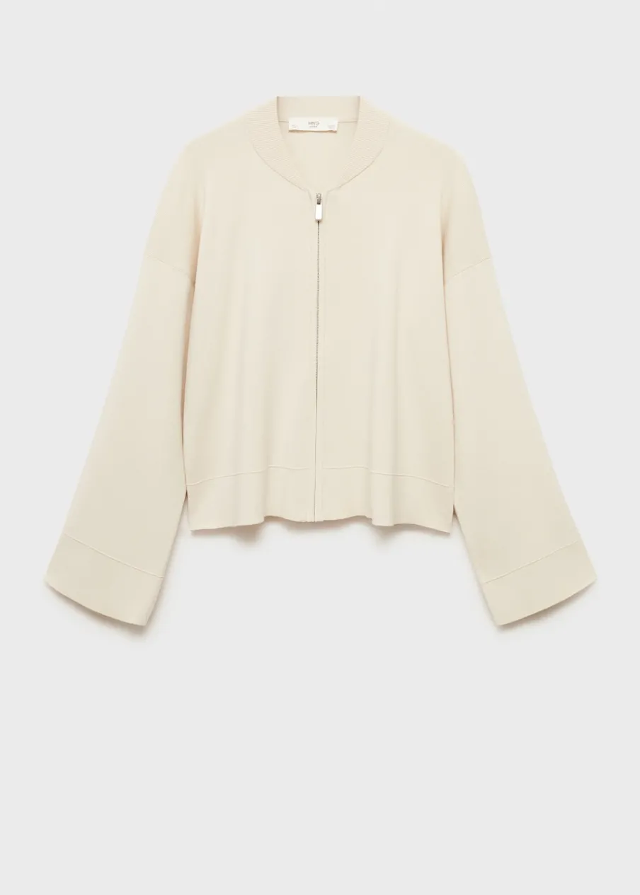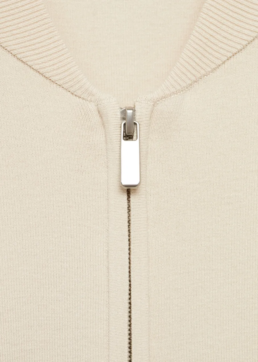 Tkanina ze ściągaczowej dzianiny. Długi rękaw. Poszerzany rękaw. Zapięcie z przodu na suwak. Model wcięty.