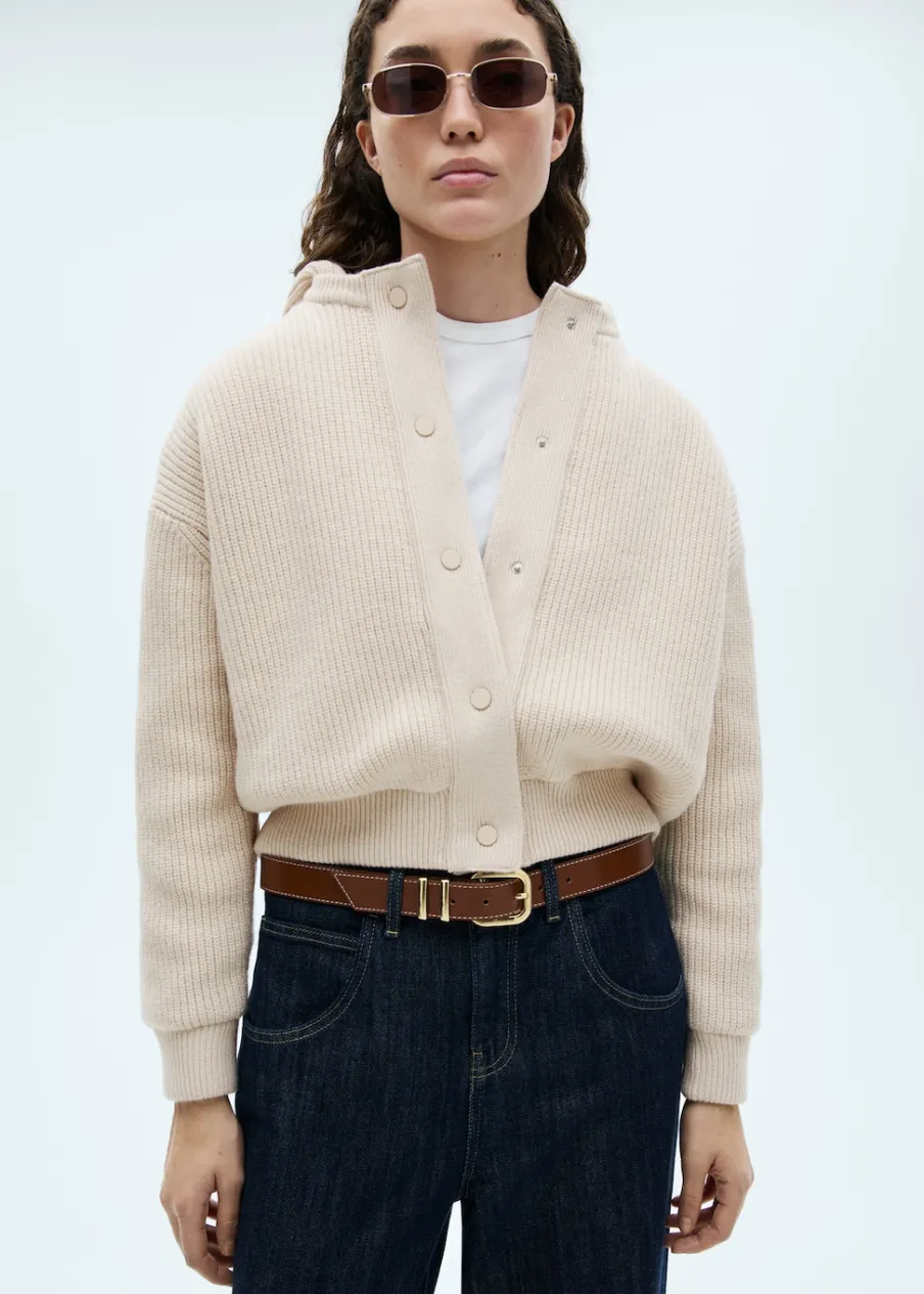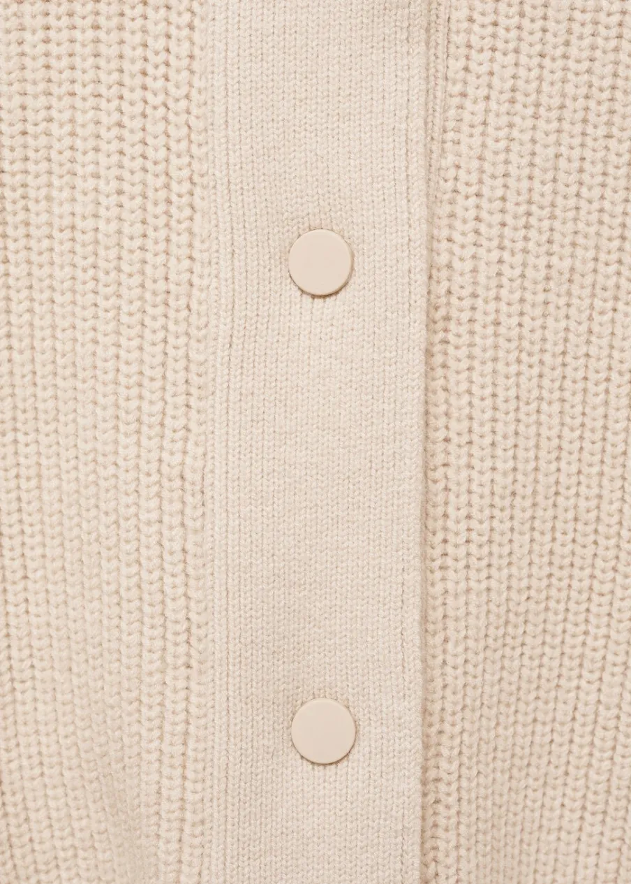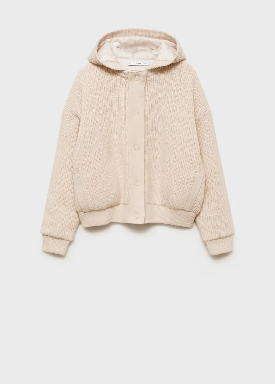 Model pikowany. Długi rękaw. Wewnętrzna podszewka. Modelka ma 175 cm wzrostu i nosi rozmiar S/36. Model prosty. Tkanina z grubej dzianiny. Kaptur. Zapięcie na zatrzaski z przodu.