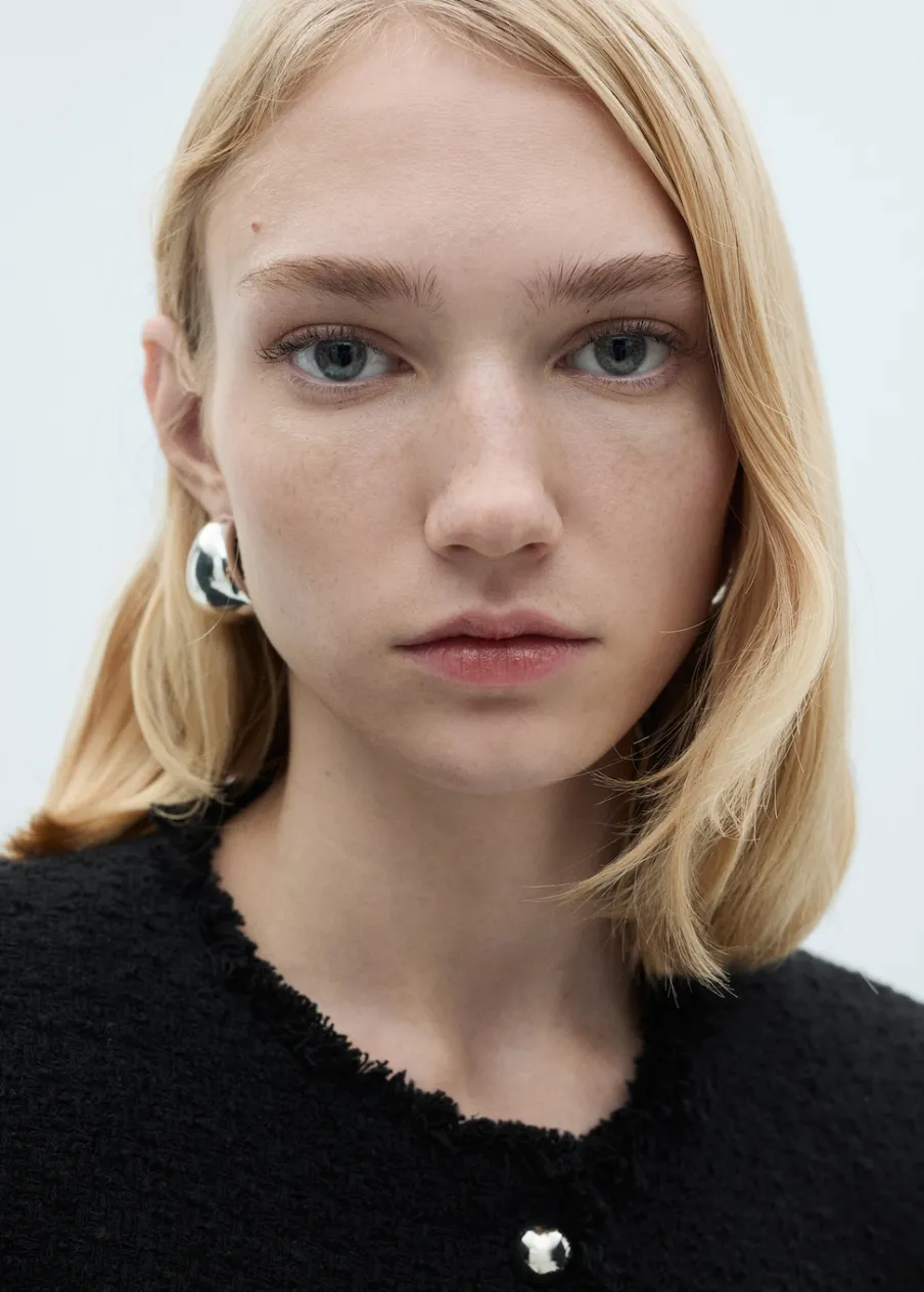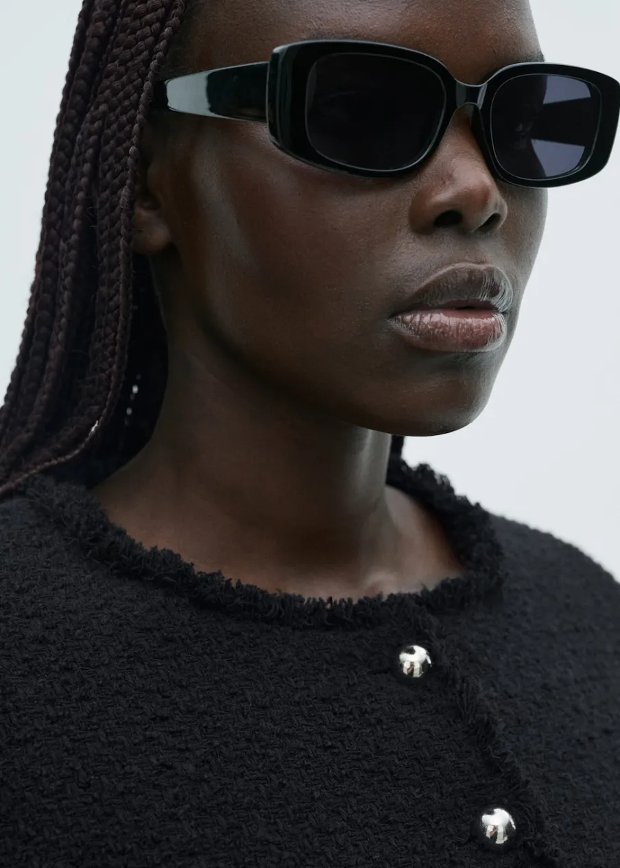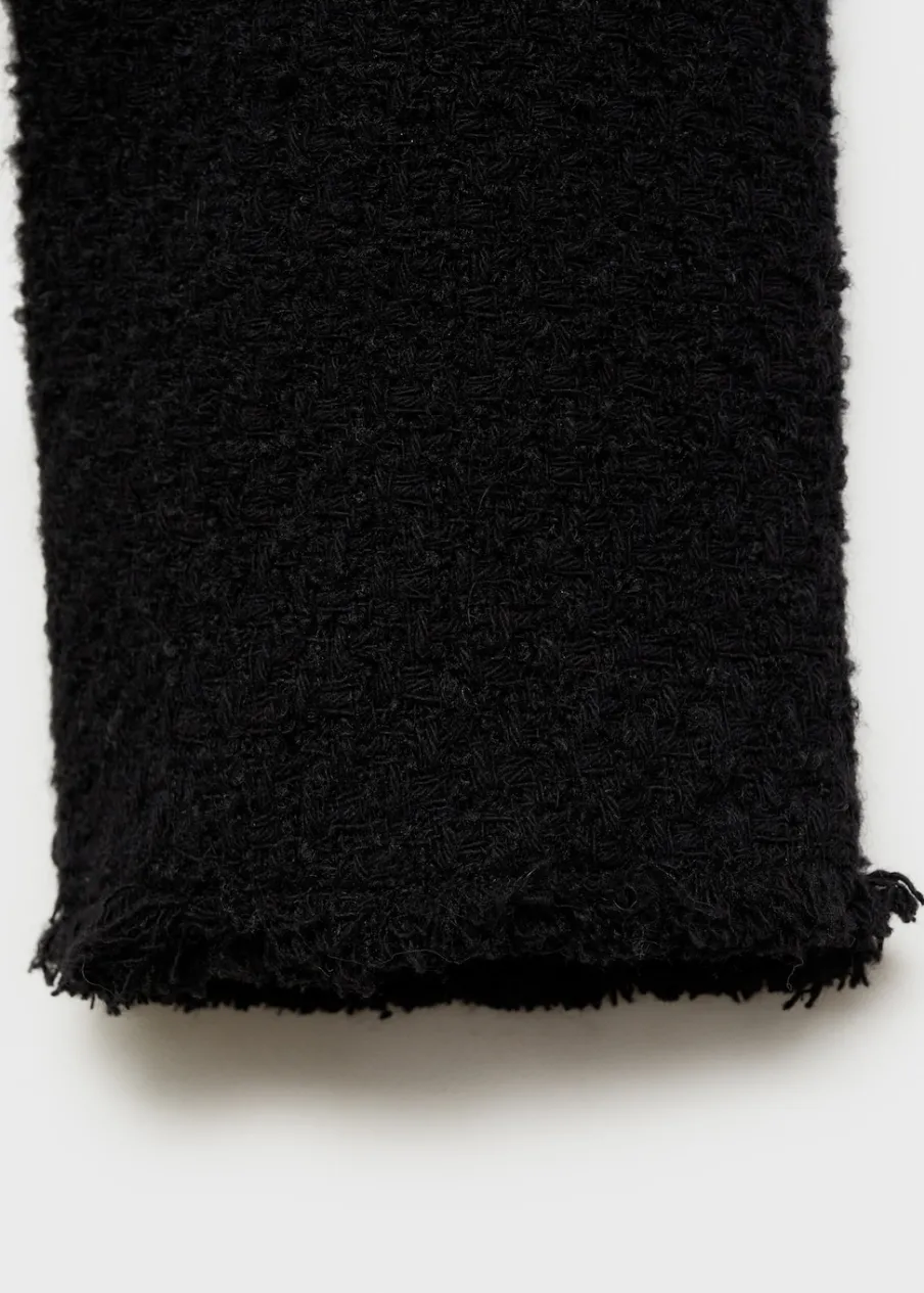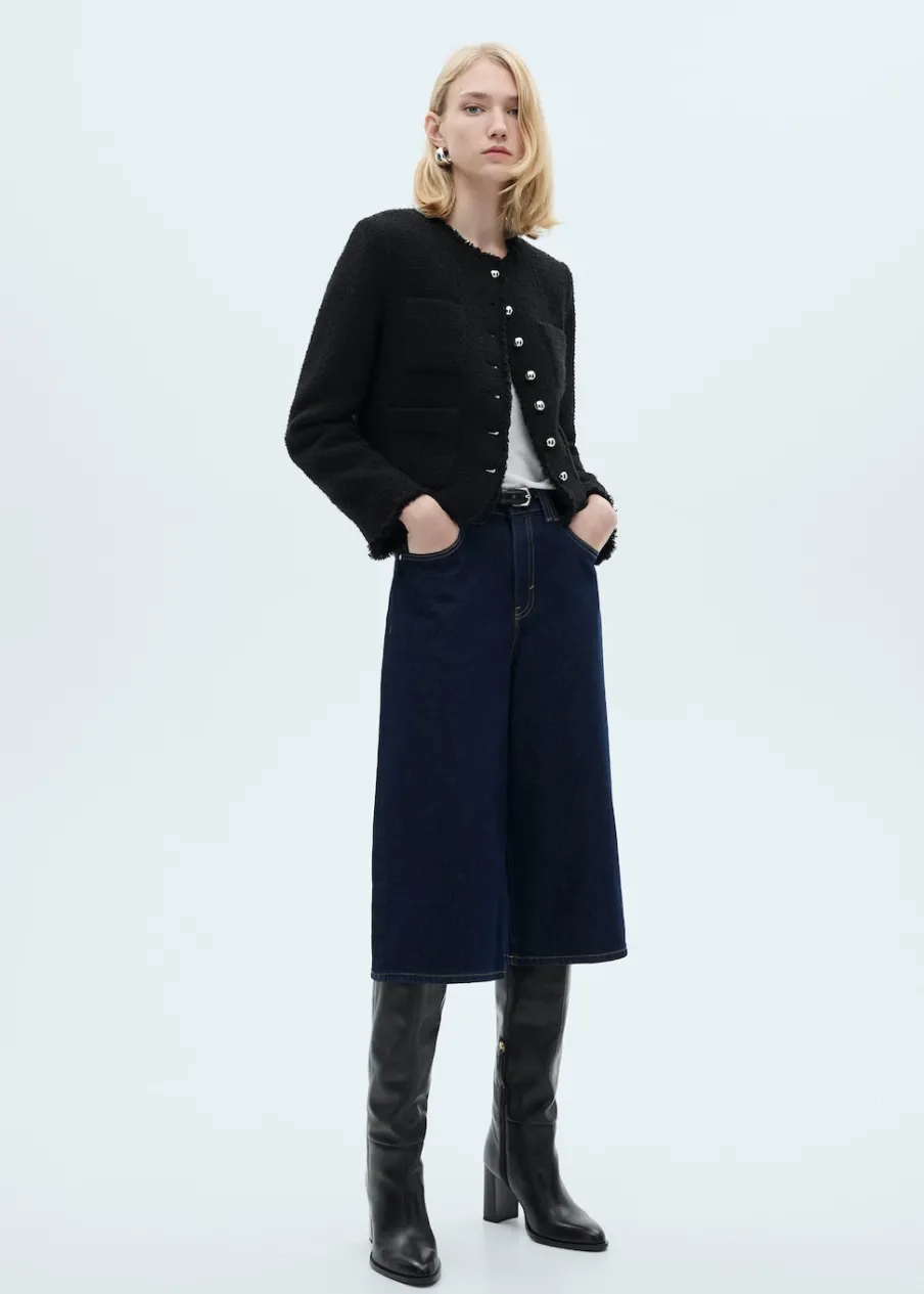Tkanina z mieszanki bawełny i wełny. Tkanina tweedowa. Model prosty. Średnia wielkość. Okrągły dekolt. Długi rękaw. Zapinane mankiety. Dwie kieszenie naszyte z przodu. Zapięcie z przodu na guziki. Postrzępione wykończenia. Tylko podszewka. Dostępne w Plus Size.