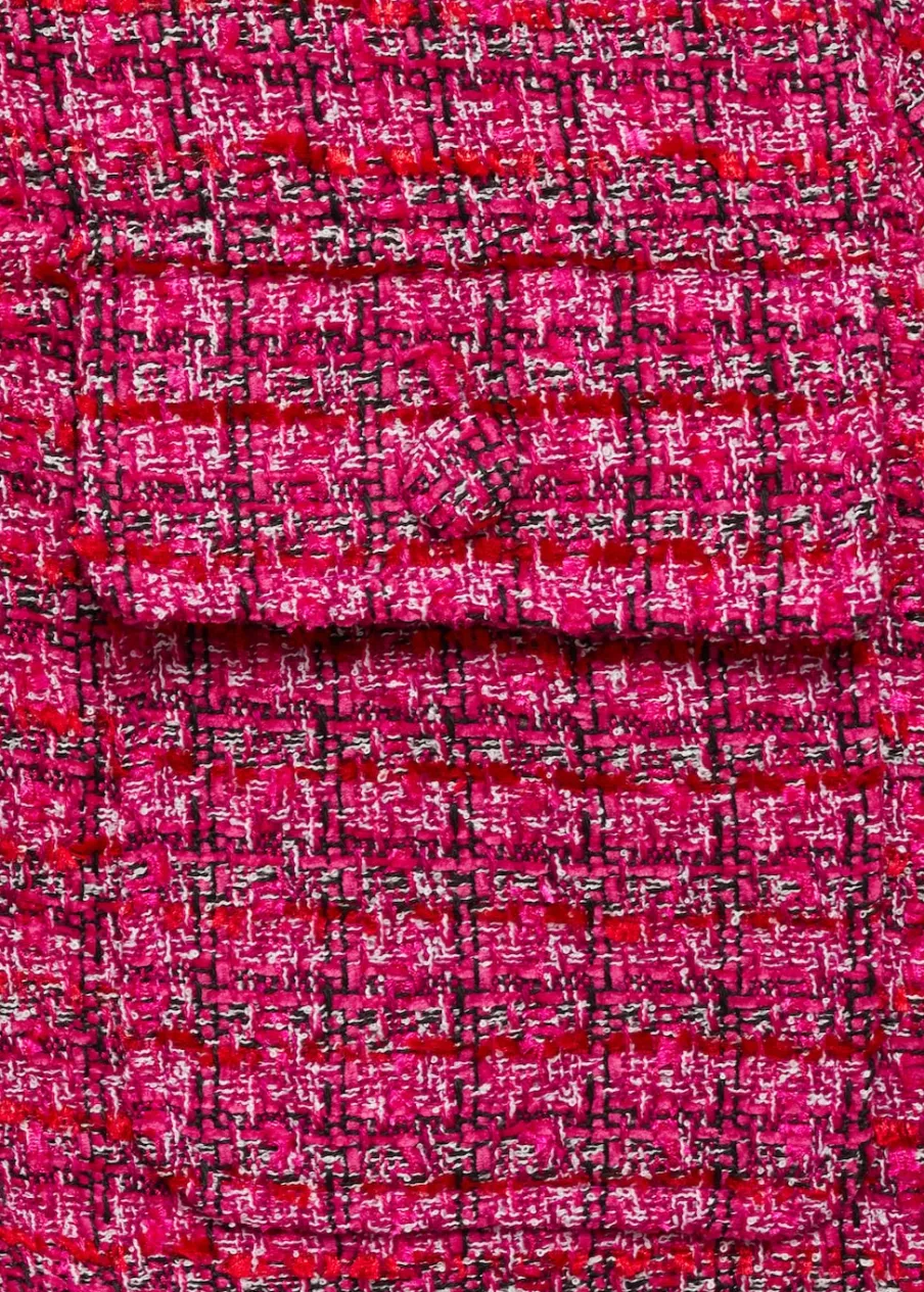 OpisTkanina tweedowa. Model oversize. Krótki rękaw. Dwie kieszenie z klapą naszyte z przodu. Zapięcie z przodu na gu…