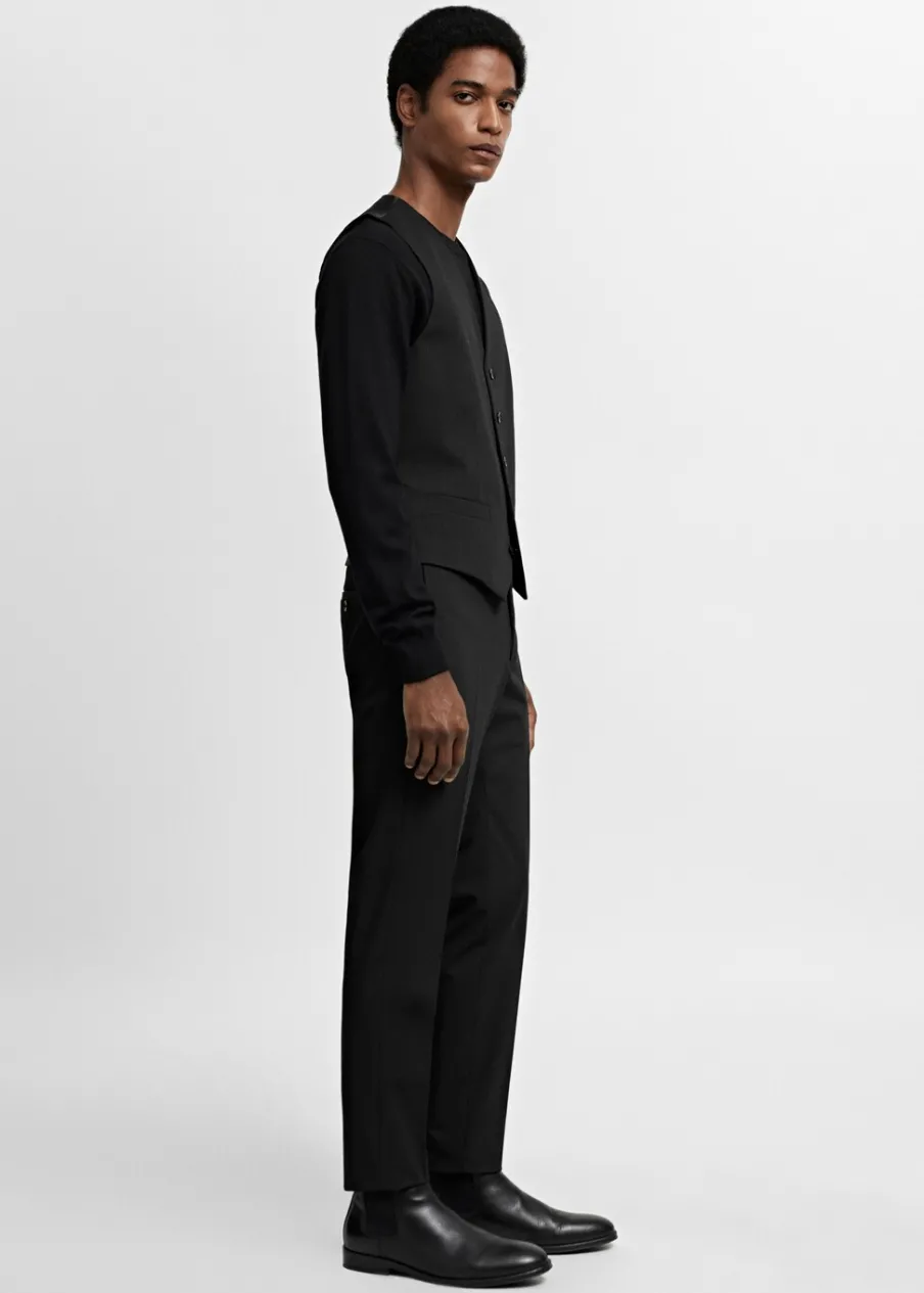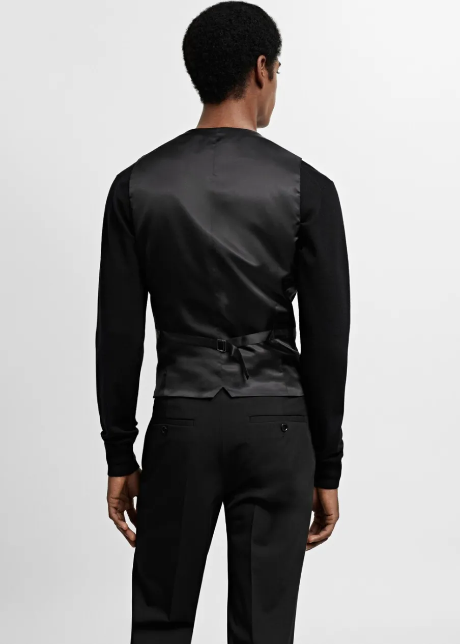 Super slim-fit. Wykonano z poliestru z recyklingu: wytrzymałego, oddychającego i łatwego w pielęgnacji materiału, dzięki czemu ubranie jest wygodne w użytkowaniu. Comfort stretch: elastyczna tkanina dla większego komfortu. Dekolt V. Bez rękawów. Klamerka do regulacji z tyłu. Wewnętrzna podszewka. Wewnętrzna kieszeń. Model ma 183 cm wzrostu i nosi rozmiar M. Komfort: to ubranie zapewnia pełną swobodę ruchu i odzyskuje swój pierwotny kształt. Dwie wpuszczene kieszenie z przodu. Zapięcie na guziki z przodu.