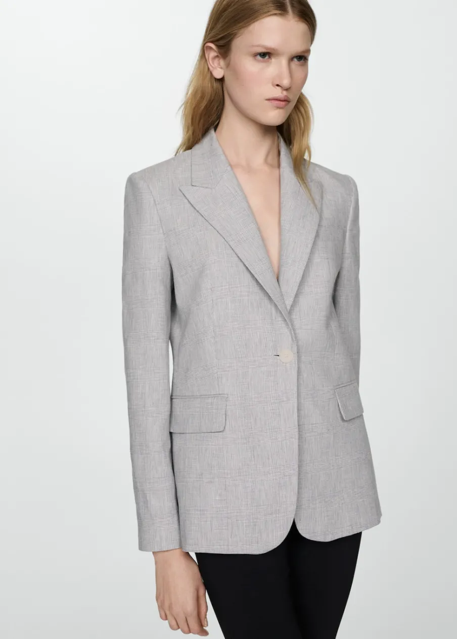 Tkanina mieszanka bawełny i lnu. Model prosty. Wzór w kurzą stopkę. Dekolt w szpic z kołnierzykiem. Klapy z nacięciem. Długi rękaw. Dwie kieszenie z przodu z wypustkami i patką. Zapięcie z przodu na guzik. Wewnętrzna podszewka. Dostępne w Plus Size.