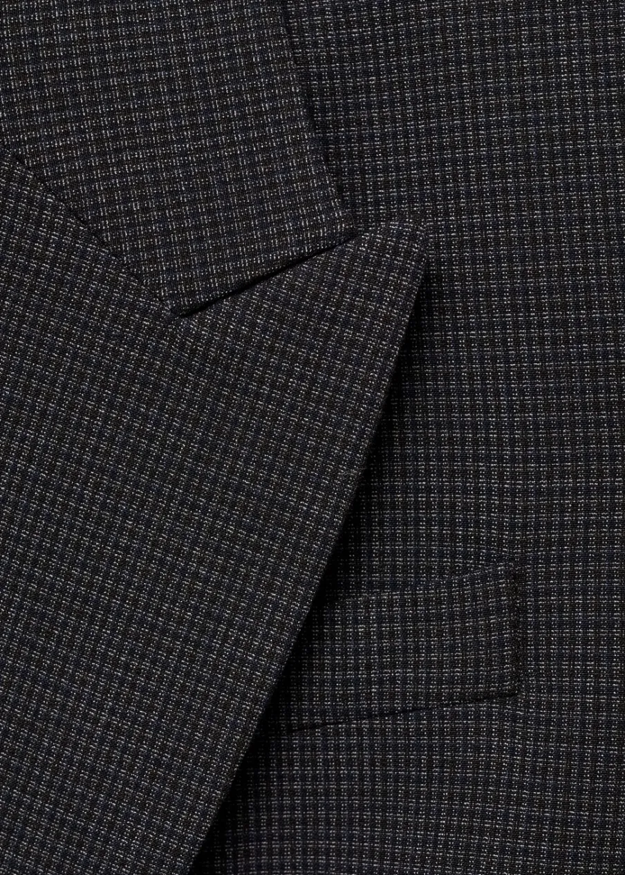 Model prosty. Wzór w drobną kurzą stopkę. Dekolt w szpic z kołnierzykiem. Długi rękaw z zapięciem na guziki. Dwie kieszenie z przodu z wypustkami i patką. Zapięcie z przodu na guzik. Rozcięcie z tyłu u dołu. Wewnętrzna podszewka.