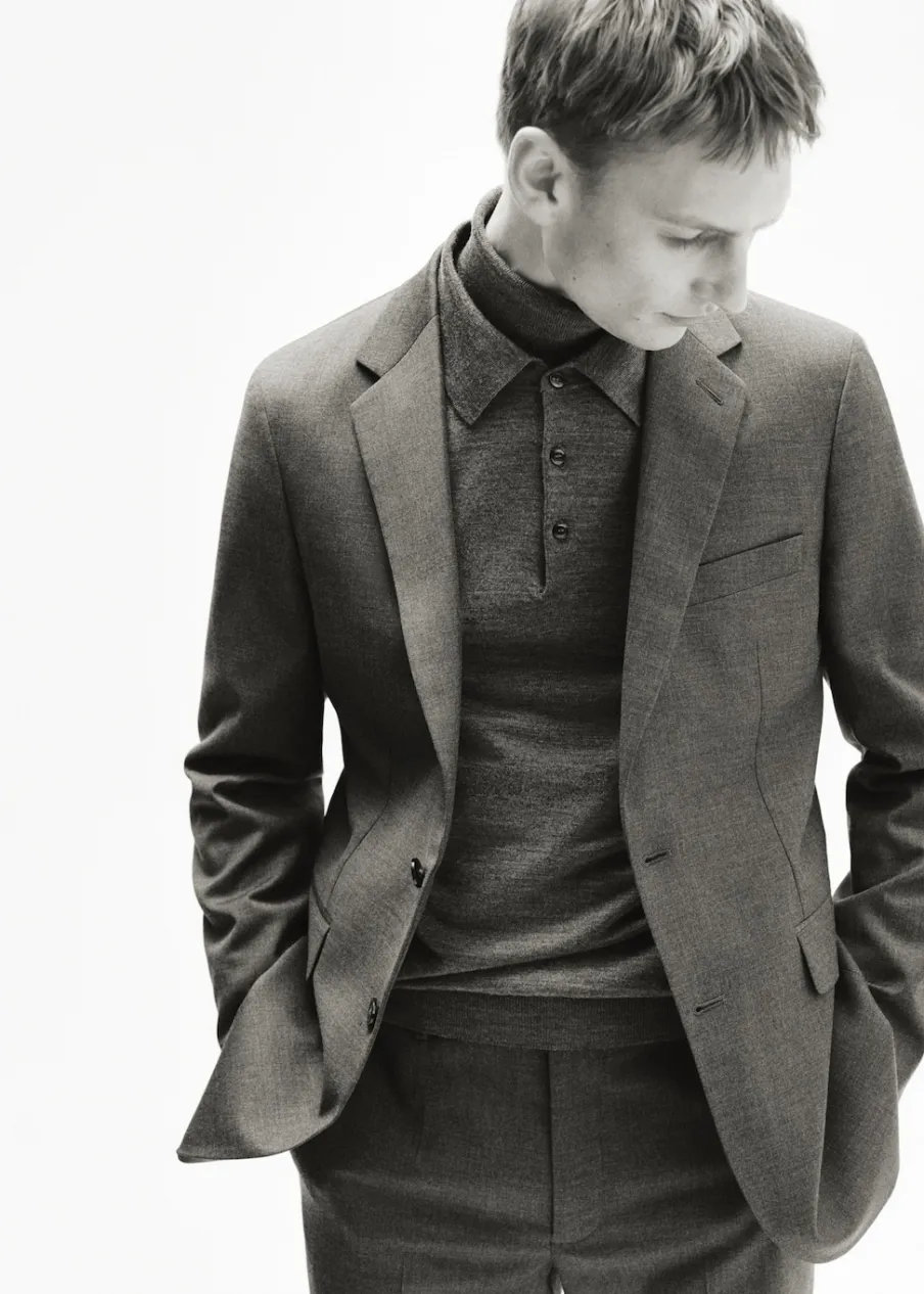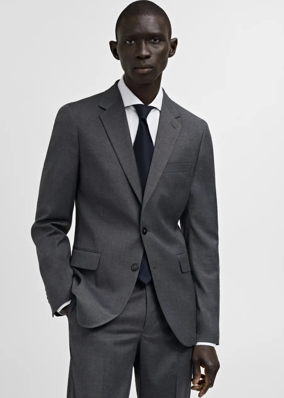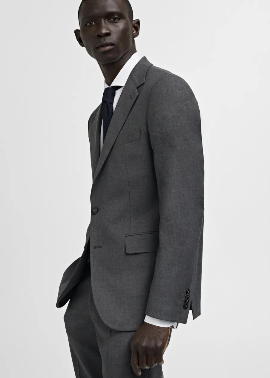 OpisSlim Fit. Kołnierz z klapami. Dwurzędowe zapięcie. Dwie kieszenie z patkami z przodu. Zapinane mankiety. Rozcięc…