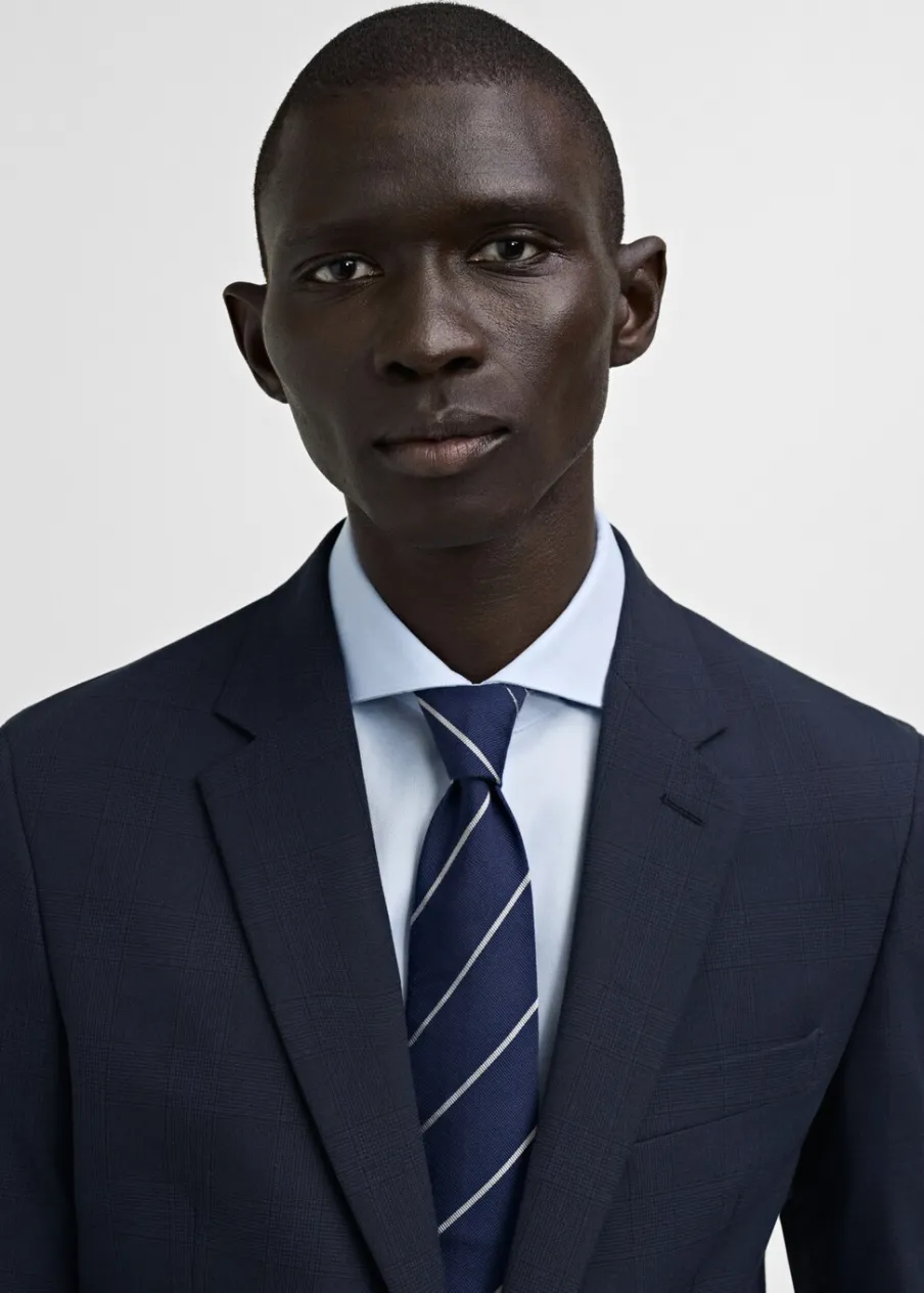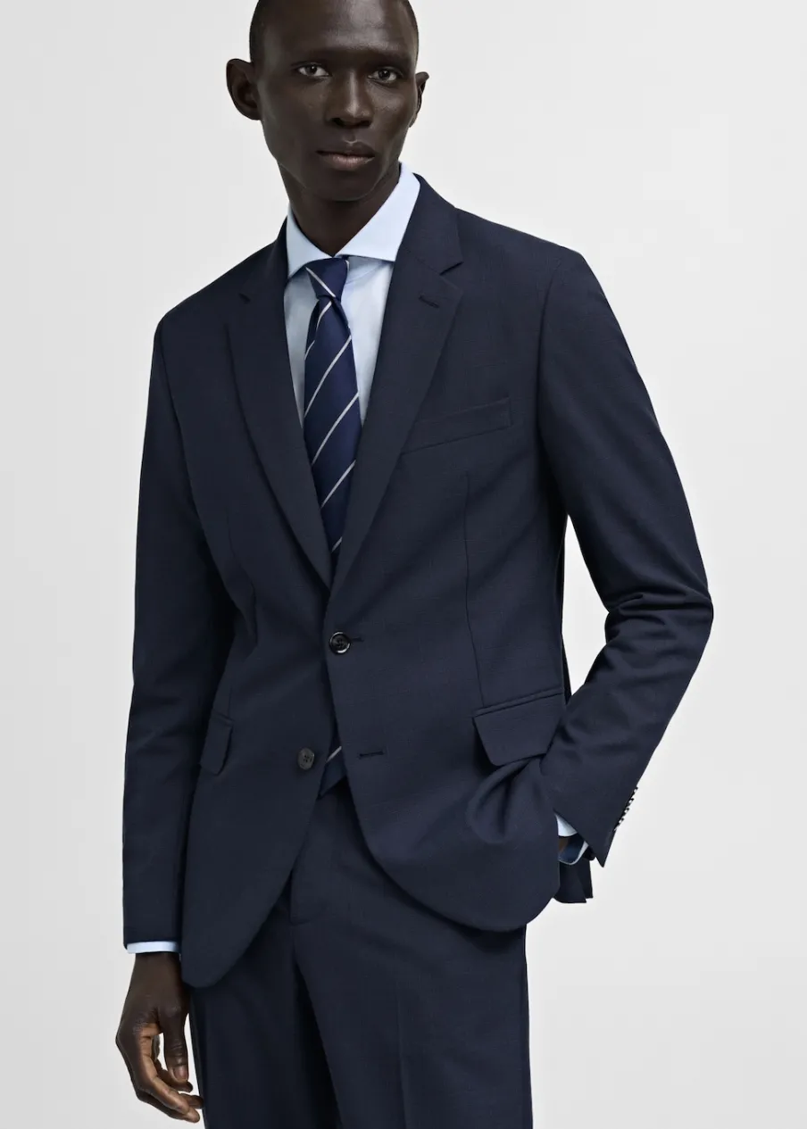 Slim-fit. Kołnierz z klapami. Kieszeń wpuszczana na piersi. Dwie kieszenie z patkami z przodu. Zapinane mankiety. Wewnętrzna podszewka. Model ma 185 cm wzrostu i nosi rozmiar 50.
