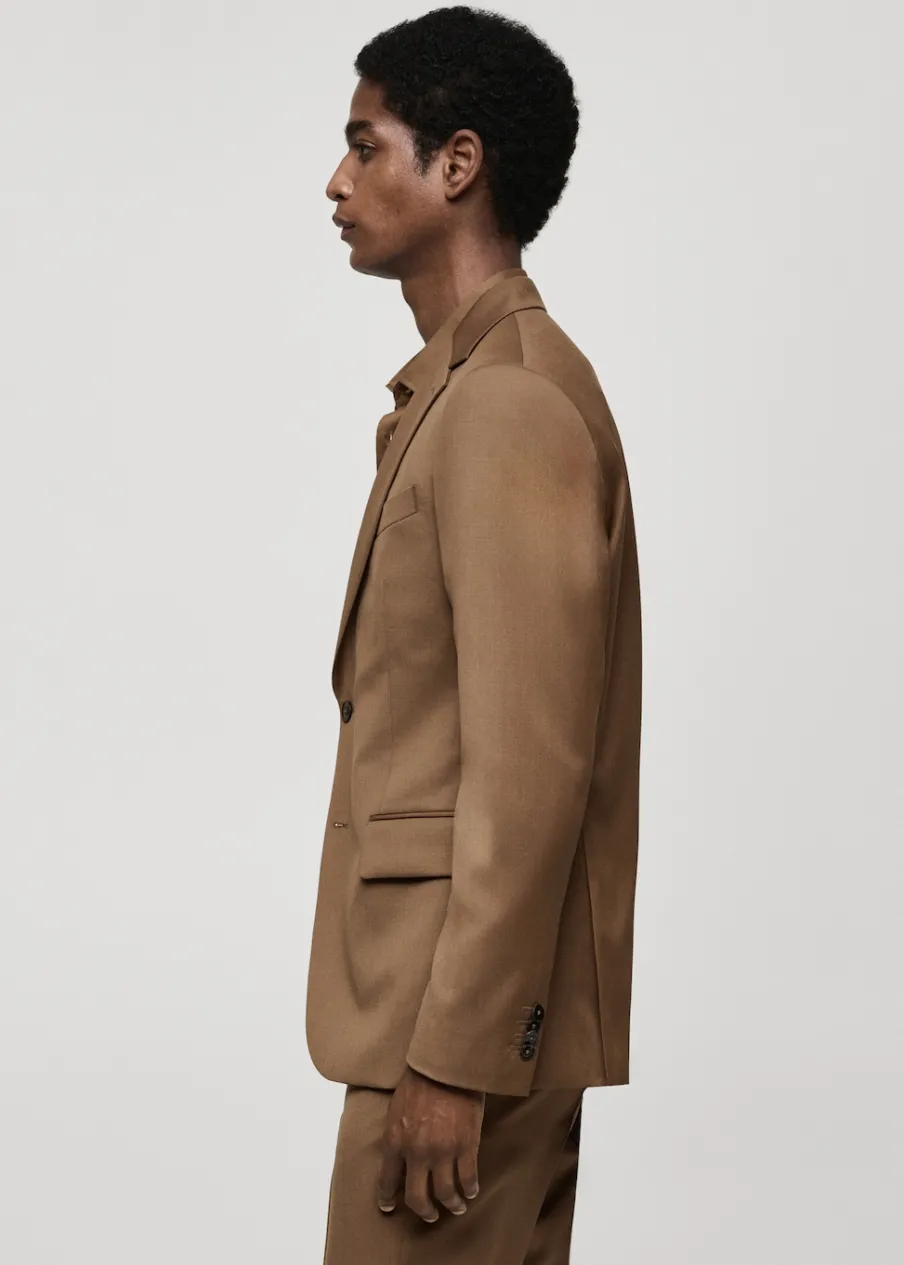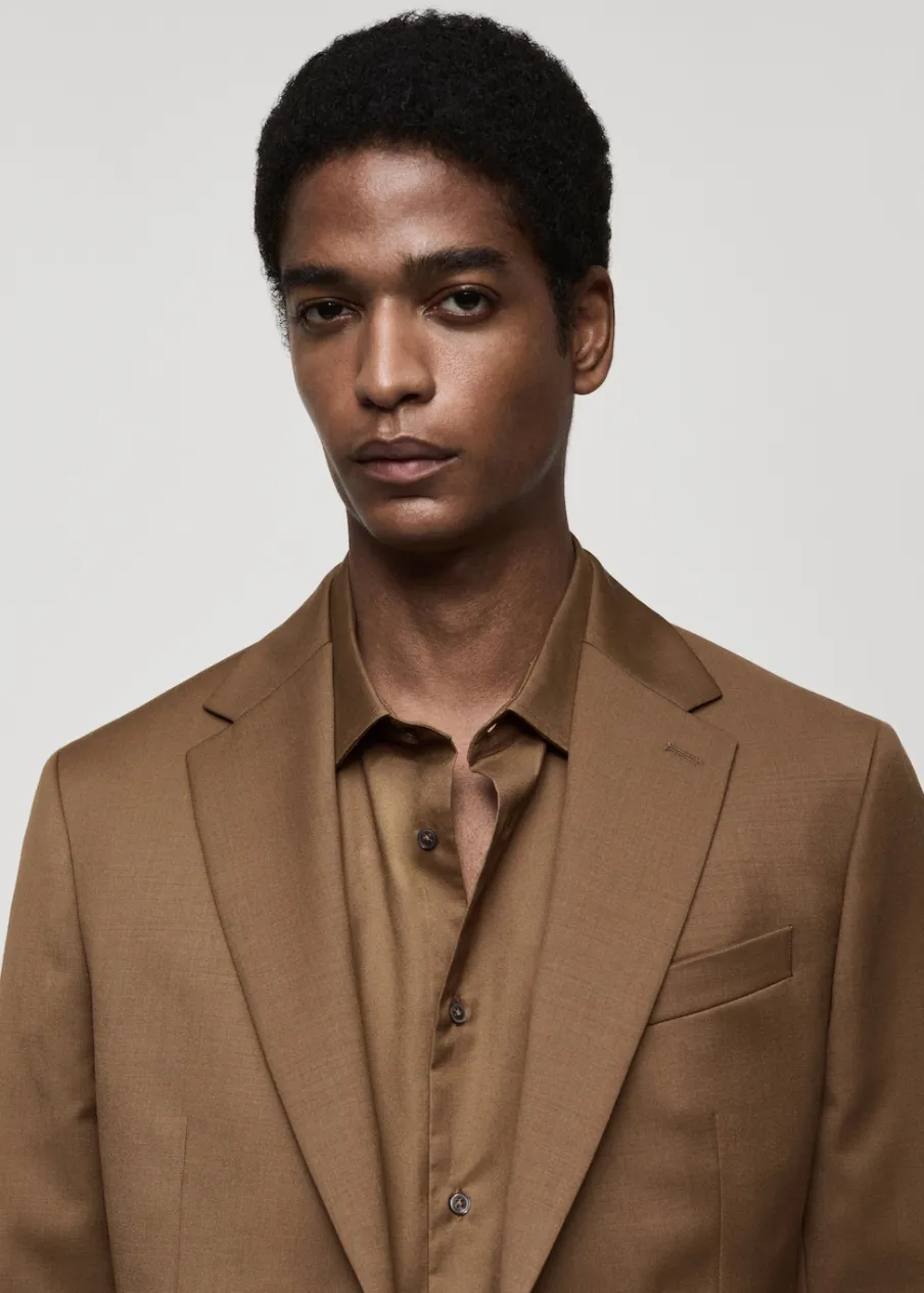 ESSENTIALS: Made to last. Tkanina z 100% wełny dziewiczej. Slim-fit. Kołnierz z klapami. Kieszeń wpuszczana na piersi. Dwie kieszenie z patką. Wewnętrzna kieszeń. Wewnętrzna podszewka. Prosty dół z rozcięciami po bokach. Model ma 190 cm wzrostu i nosi rozmiar 50. Zapięcie na guziki z przodu. Długi rękaw z zapięciem na guziki.