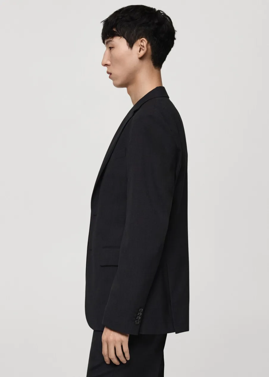ESSENTIALS: Made to last. Tkanina z 100% wełny dziewiczej. Slim-fit. Kieszeń wpuszczana na piersi. Dwie kieszenie z przodu z wypustkami i patką. Wewnętrzna podszewka. Kieszenie wewnętrzne. Termoregulacyjna: ta tkanina zapewnia optymalną przepuszczalność powietrza, by utrzymać stałą temperaturę ciała. Model ma 190 cm wzrostu i nosi rozmiar 50. Dwie szlice z tyłu. Klapy otwarte. Zapięcie na guziki z przodu. Długi rękaw z zapięciem na guziki.