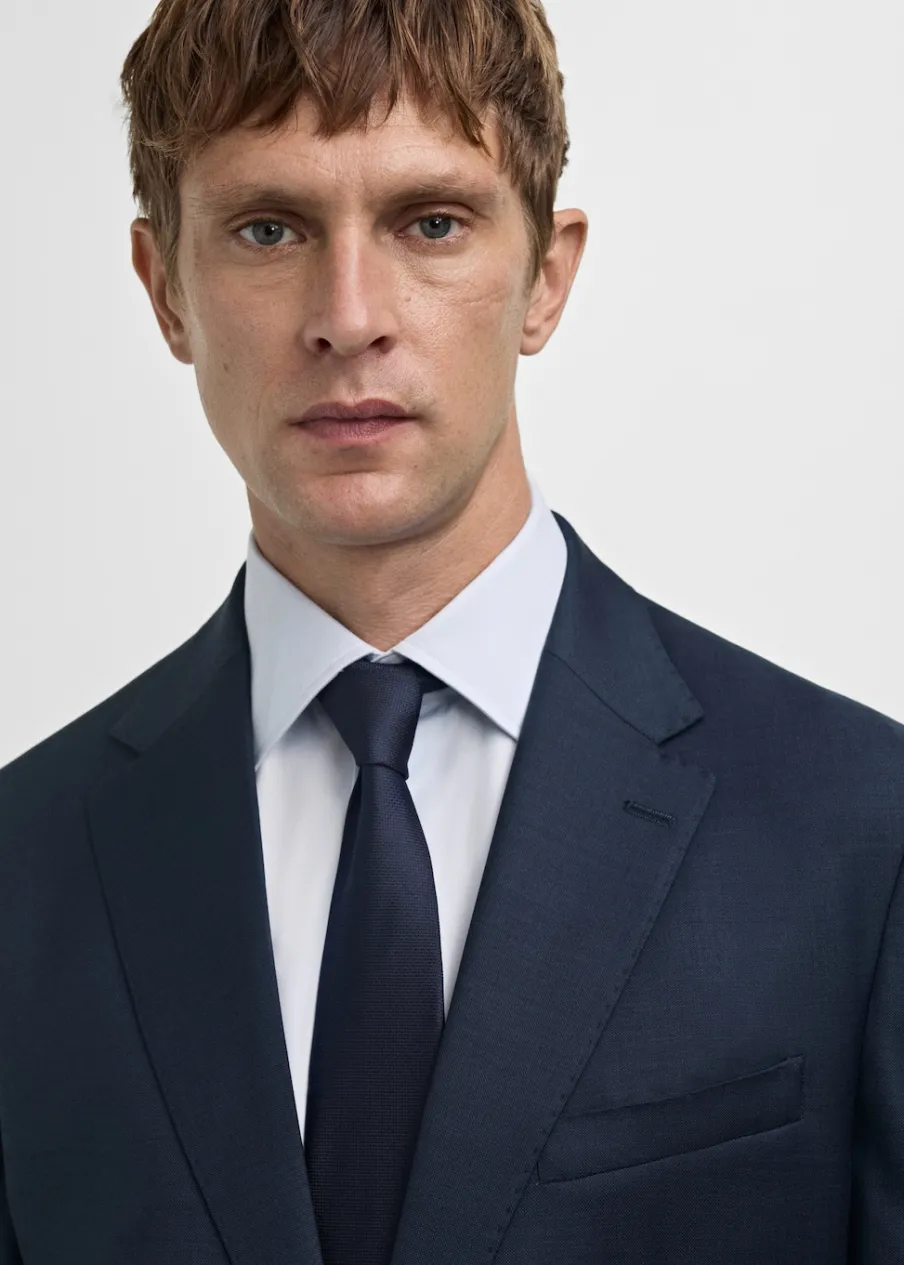 Slim-fit. Tkanina włoskiej marki Marlane. 100% wełna dziewicza. Klapy otwarte. Zapięcie na guziki. Zapinane mankiety. Kieszenie boczne z patkami. Kieszeń wpuszczana na piersi. Dwa rozcięcia u dołu po bokach. Wewnętrzna podszewka. Model ma 185 cm wzrostu i nosi rozmiar 50.
