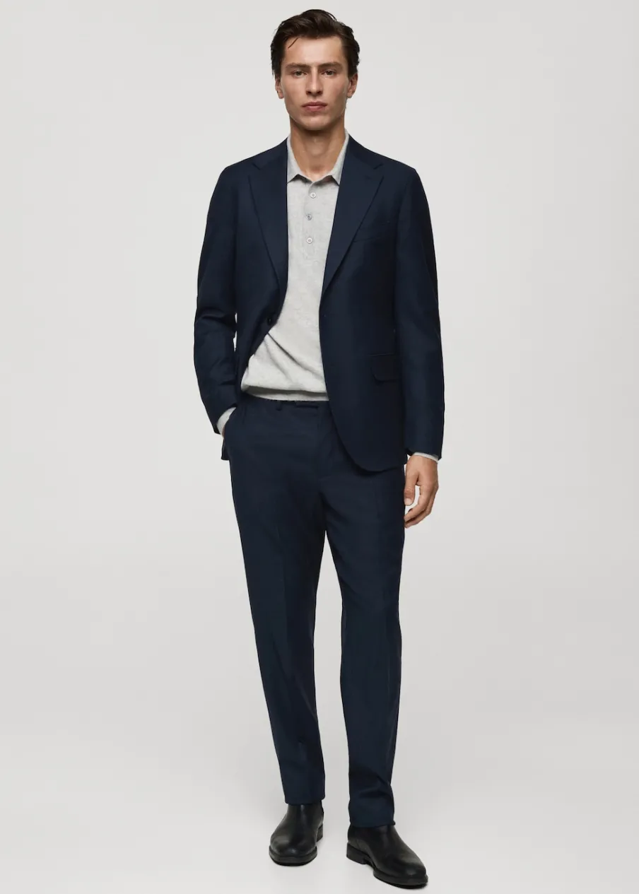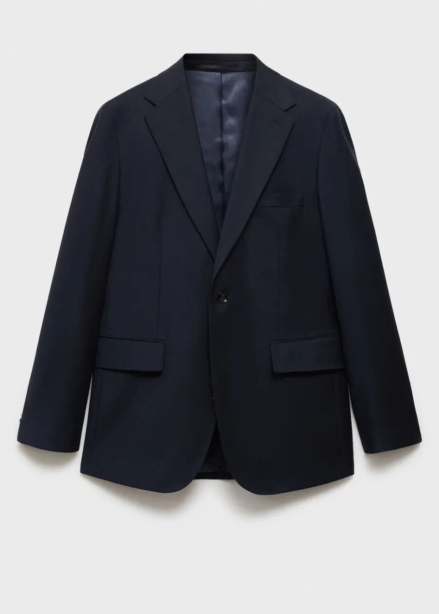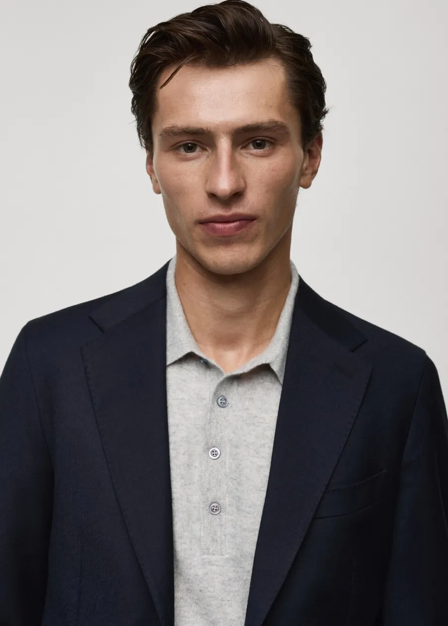 Kolekcja Selection. Wyprodukowano w Portugalii. Tkanina z 100% włoskiej wełny dziewiczej marki LANEROSSI BY MARZOTTO. Slim-fit. Klapy otwarte. Zapięcie na guzik z przodu. Kieszeń wpuszczana na piersi. Dwie kieszenie z przodu z wypustkami i patką. Długi rękaw z guzikami na mankietach. Wewnętrzna podszewka. Wewnętrzna kieszeń. Model ma 190 cm wzrostu i nosi rozmiar 50. Dwie szlice z tyłu.