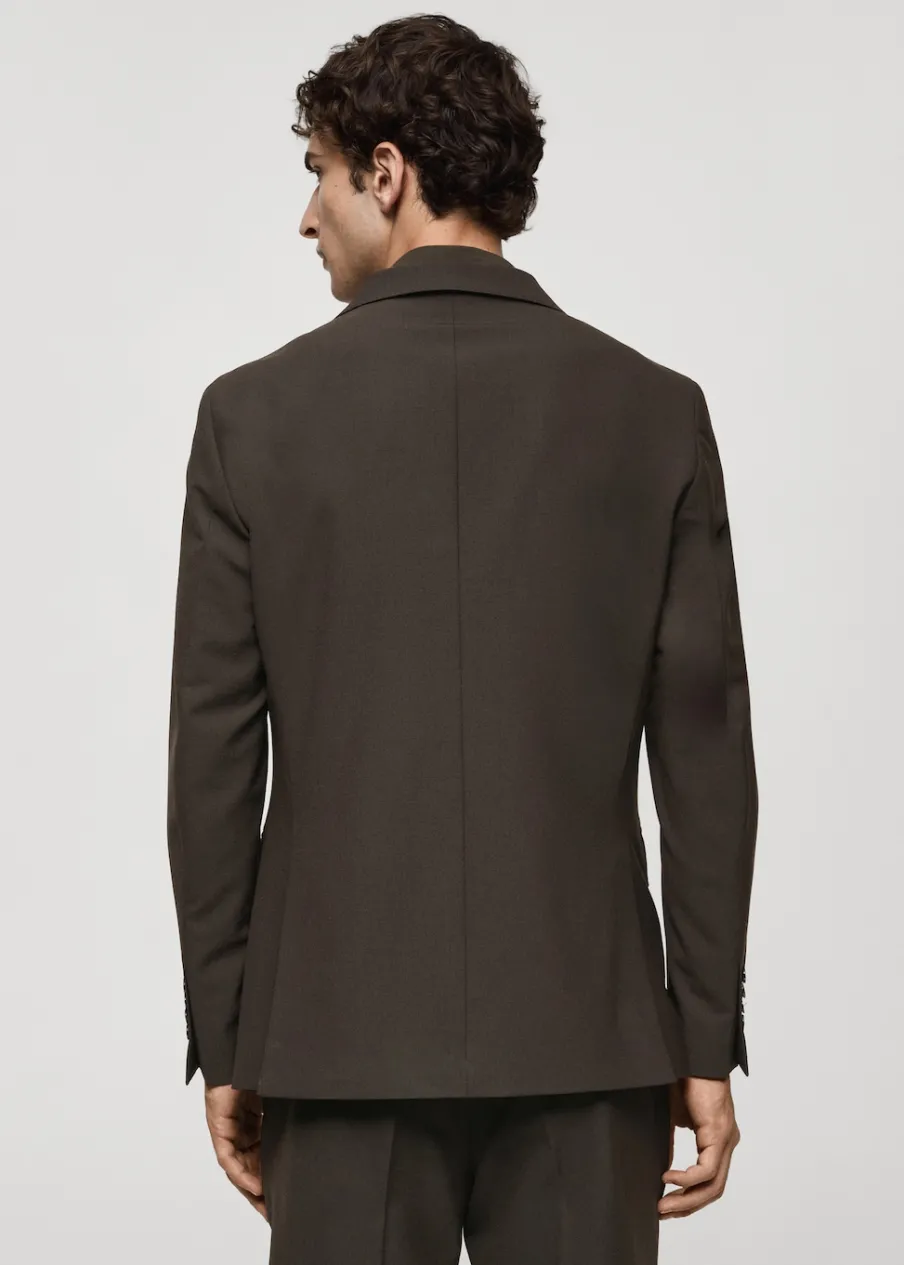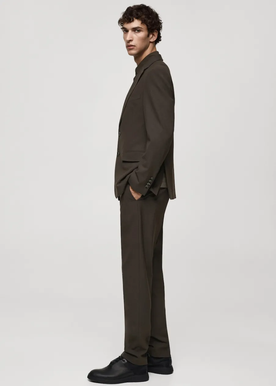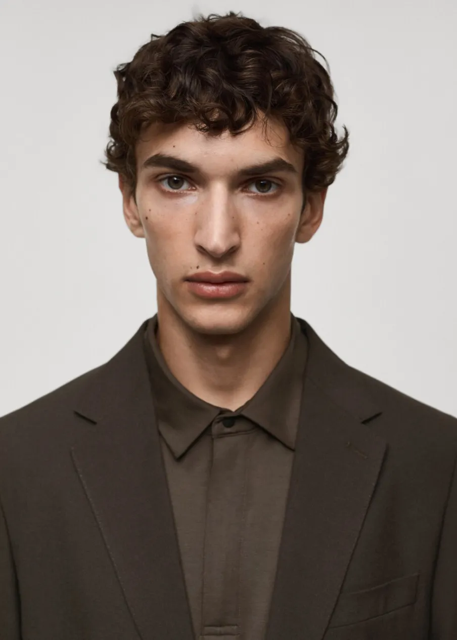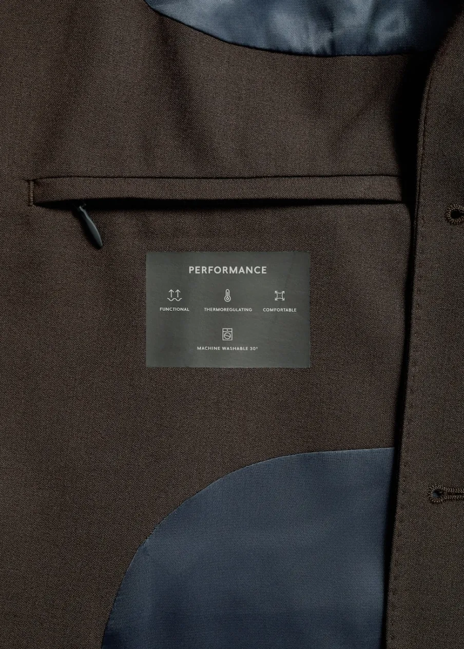 Kolekcja Performance. Tkanina mieszanka wełny. Wrinkle free: niegniotąca się tkanina. Comfort stretch: elastyczna tkanina dla większego komfortu. Slim-fit. Kieszeń wpuszczana na piersi. Dwie kieszenie z patkami z przodu. Kieszenie wewnętrzne. Termoregulacyjna: ta tkanina zapewnia optymalną przepuszczalność powietrza, by utrzymać stałą temperaturę ciała. Można prać w pralce w 30º. Klapy otwarte. Dwie szlice z tyłu. Model ma 190 cm wzrostu i nosi rozmiar 50. Komfort: to ubranie zapewnia pełną swobodę ruchu i odzyskuje swój pierwotny kształt. Zapięcie na guziki z przodu. Długi rękaw z zapięciem na guziki.
