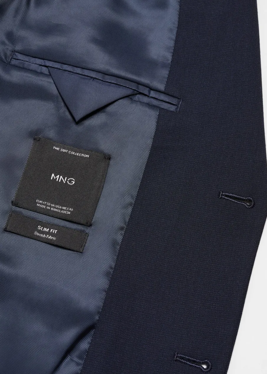 Slim-fit. Wykonano z poliestru z recyklingu: wytrzymałego, oddychającego i łatwego w pielęgnacji materiału, dzięki czemu ubranie jest wygodne w użytkowaniu. Comfort stretch: elastyczna tkanina dla większego komfortu. Wykonano z poliestru: wytrzymałego, oddychającego i łatwego w pielęgnacji materiału, dzięki czemu ubranie jest wygodne w użytkowaniu. Struktura w jodełkę. Klapy z nacięciem. Kieszeń wpuszczana na piersi. Dwie kieszenie z patką z przodu. Podwójne rozcięcie z tyłu. Zapięcie na guziki. Wewnętrzna podszewka. Wewnętrzna kieszeń. Model ma 185 cm wzrostu i nosi rozmiar 50. Długi rękaw z zapięciem na guziki. Komfort: to ubranie zapewnia pełną swobodę ruchu i odzyskuje swój pierwotny kształt.
