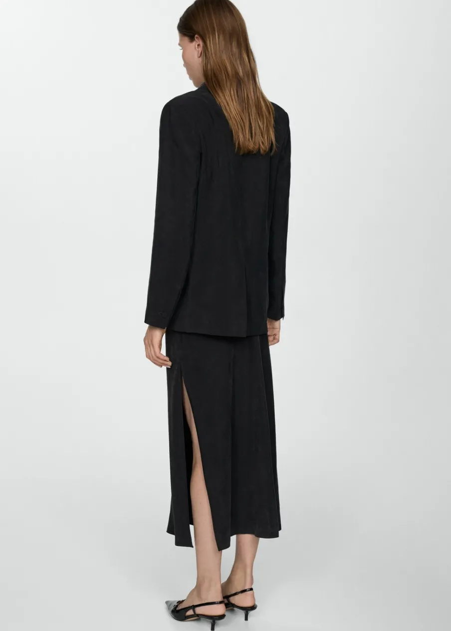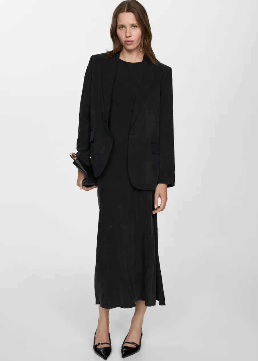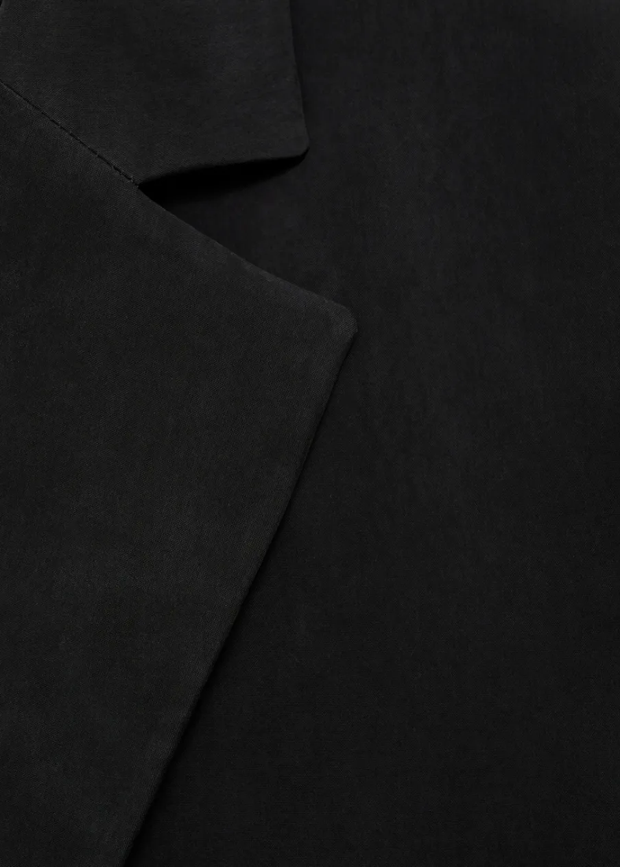 Tkanina z mieszanki włókna cupro. Model prosty. Dekolt w szpic z kołnierzykiem. Długi rękaw. Zapięcie z przodu na guzik. Wewnętrzna podszewka. Total look.
