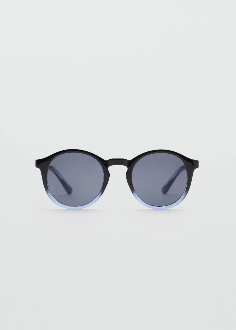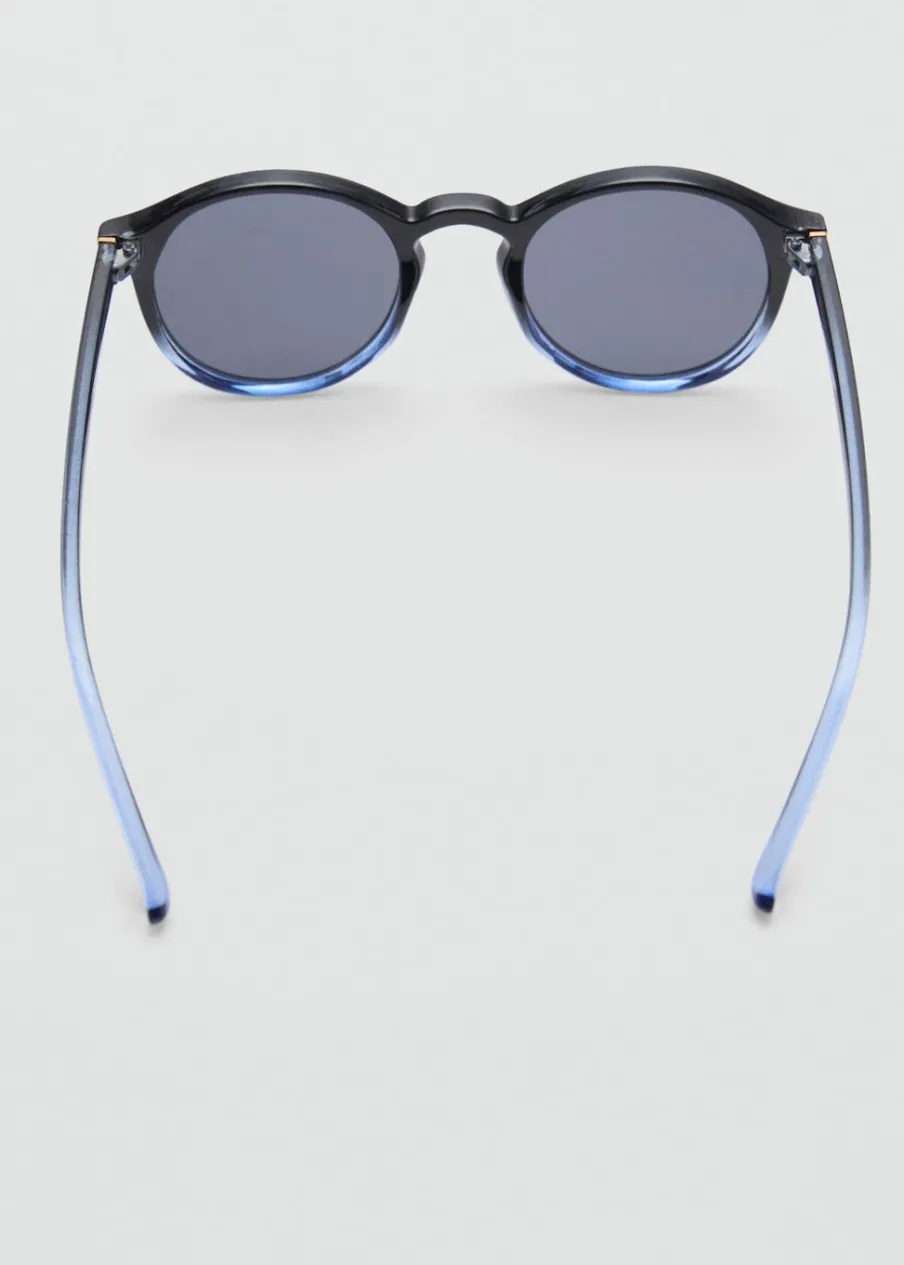 Okrągły kształt. Oprawki z tworzywa. Całkowity wskaźnik ochronny z filtrem UV kategorii 3. W zestawie składany pokrowiec i torba z tkaniny. Oprawki z tworzywa.