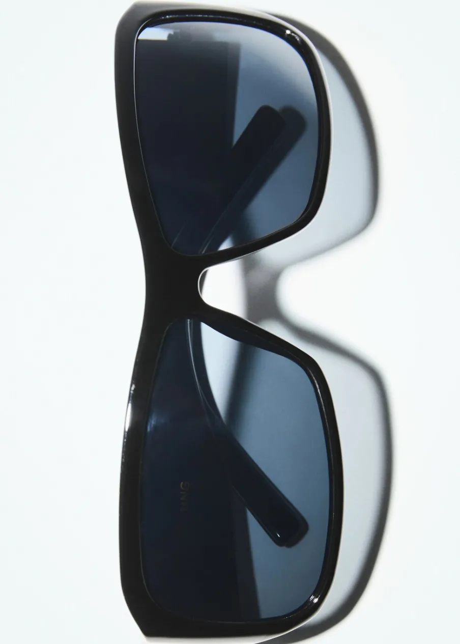 Model w dużym rozmiarze. Całkowity wskaźnik ochronny z filtrem UV kategorii 3. Te okulary zostały wytworzone z recyklowanych odpadów z procesu produkcji okularów z poliwęglanu. Otrzymany materiał zachowuje właściwości poliwęglanu, jeśli chodzi o elastyczność i trwałość. Kolekcja wizytowa. Kolekcja Selection. Modelka ma 177 cm wzrostu i nosi rozmiar S/36.