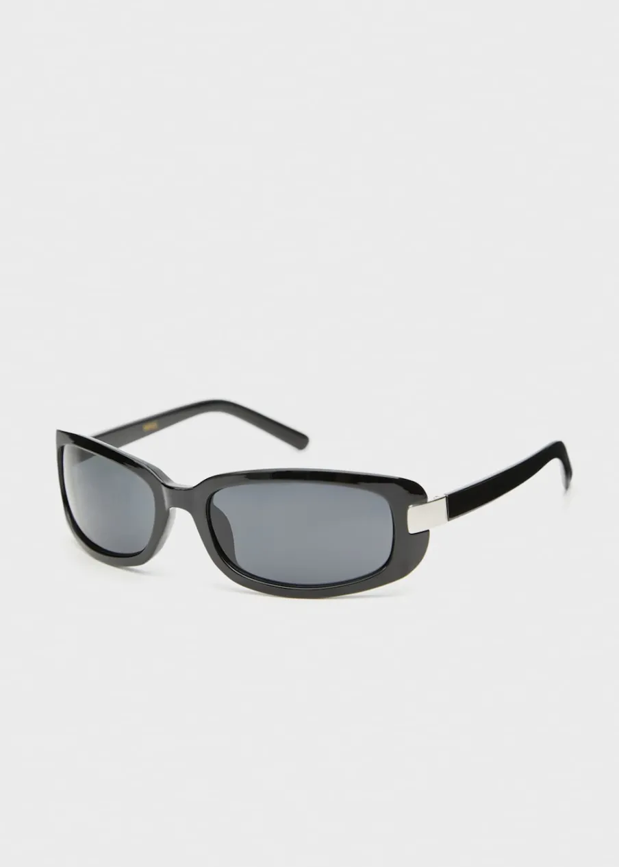 Kolekcja Selection. Prostokątny kształt. Metalowy element. Całkowity wskaźnik ochronny z filtrem UV kategorii 3. Te okulary zostały wytworzone z recyklowanych odpadów z procesu produkcji okularów z poliwęglanu. Otrzymany materiał zachowuje właściwości poliwęglanu, jeśli chodzi o elastyczność i trwałość. Kolekcja Selection. Oprawki z tworzywa. Oprawki z tworzywa.