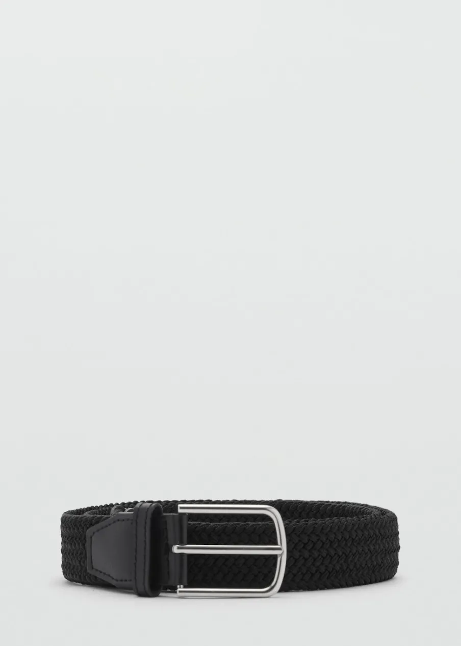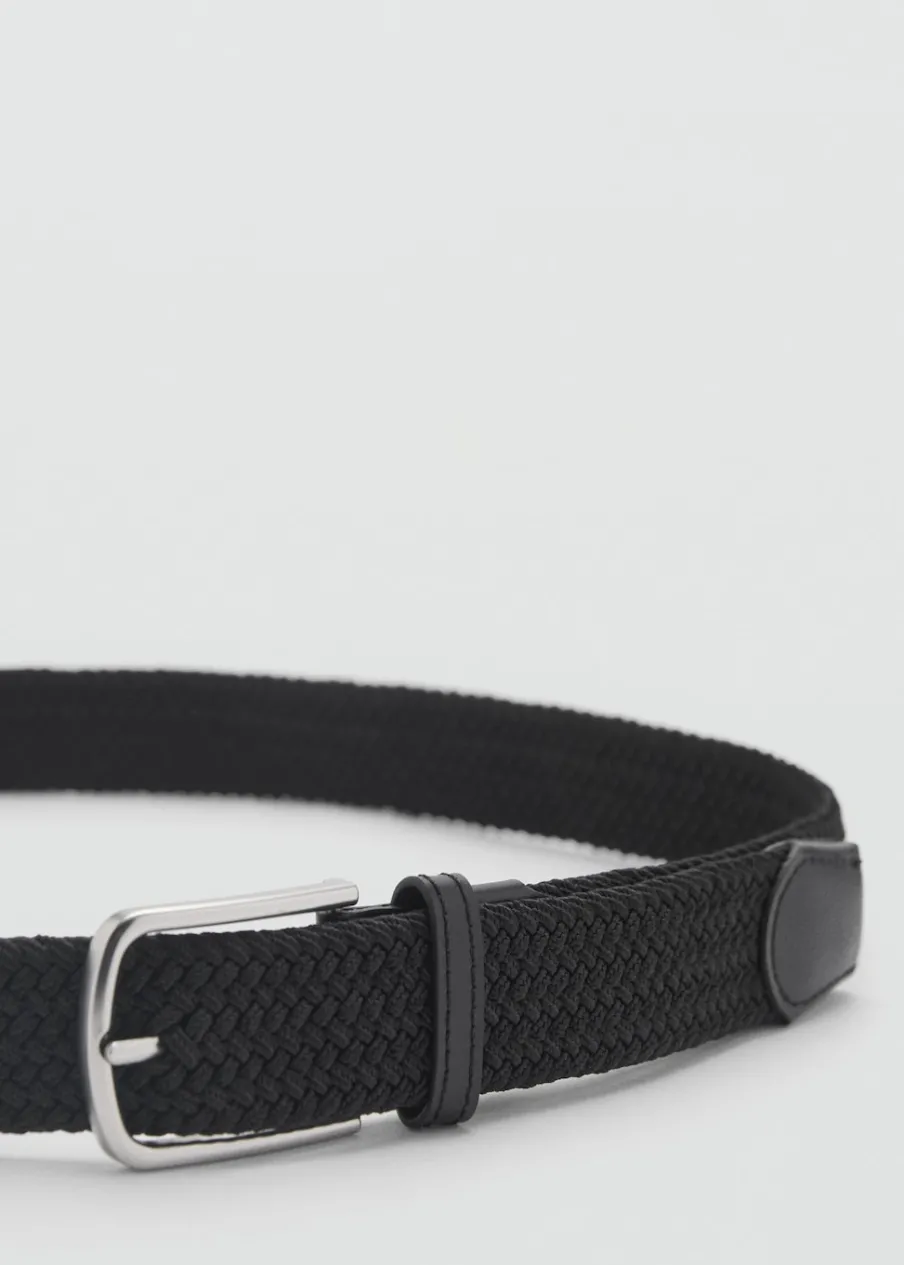 Skórzane wykończenia. Metalowa klamra. Elastyczny materiał zapewniający dopasowanie i wygodę.