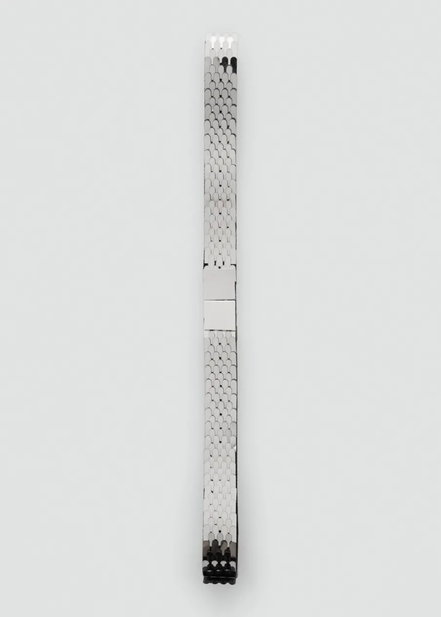OpisModel z metalu. Zapięcie na metalowy zacisk. Elementy imitujące łuski. Kolekcja wizytowa.